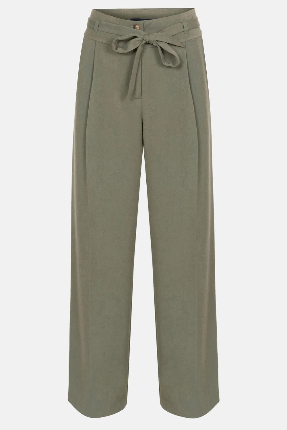 Groene Broek Met Soepelvallende, Wijde Pijpen.Met Een Chique Bandplooi En Comfortabele Zakken.Een Brede Tailleband Met 2…