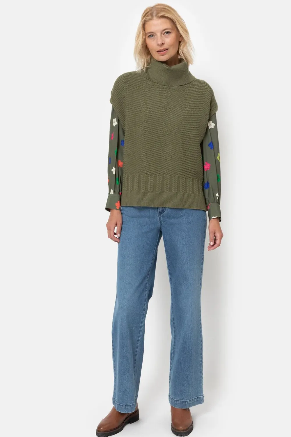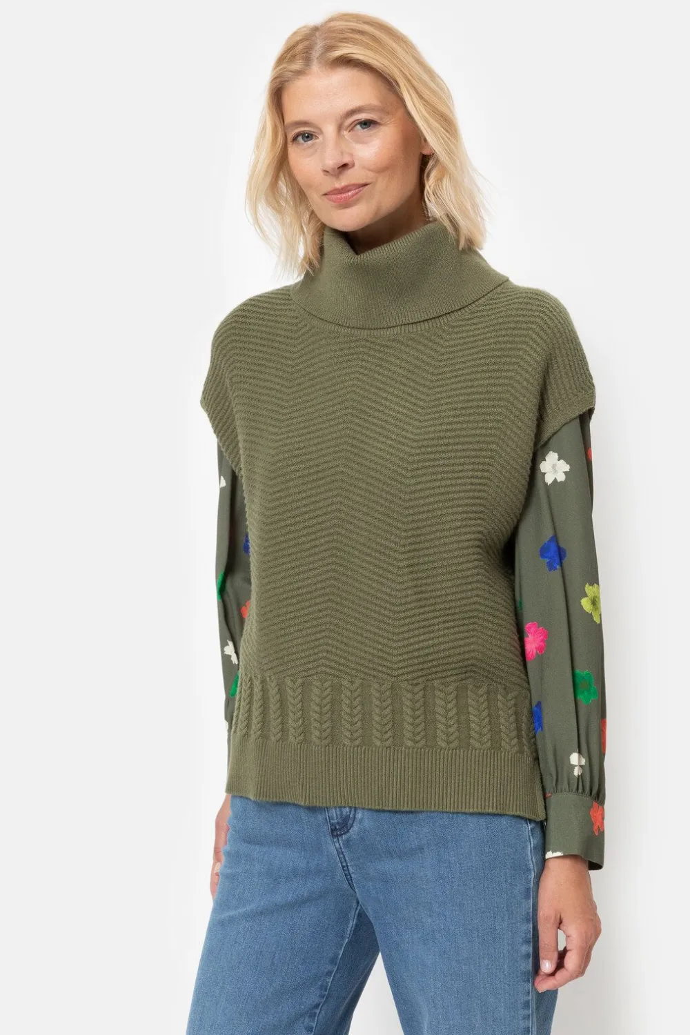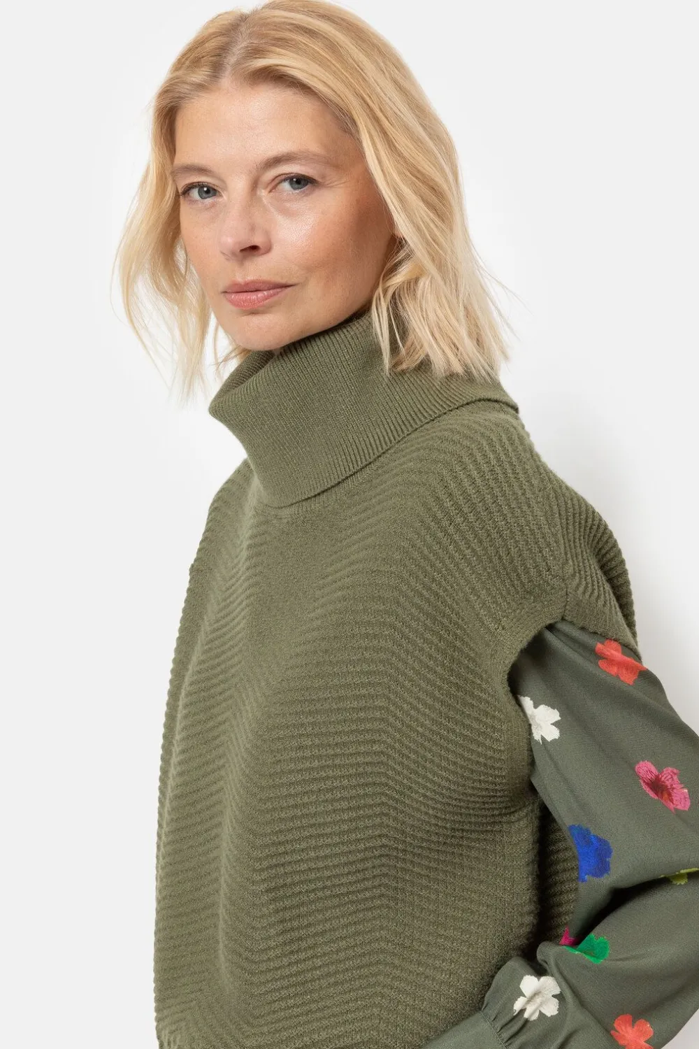 Kakigroene Mouwloze Pull In Een Zachte Viscosemix.Met Flatterende Jacquard-Strepen En Een Brede Col.Draag Boven Een Kaki…