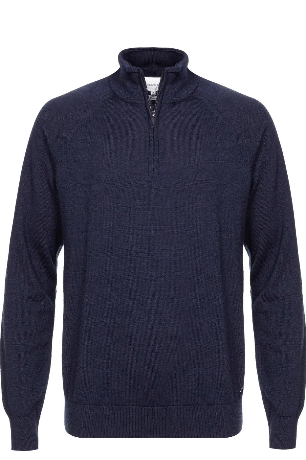 Blauwe Trui Voor Heren In 100% Zachte Merinowol.Met Lange Mouwen En Een Kraag Met Ingewerkte Rits.Casual En Chic Boven E…