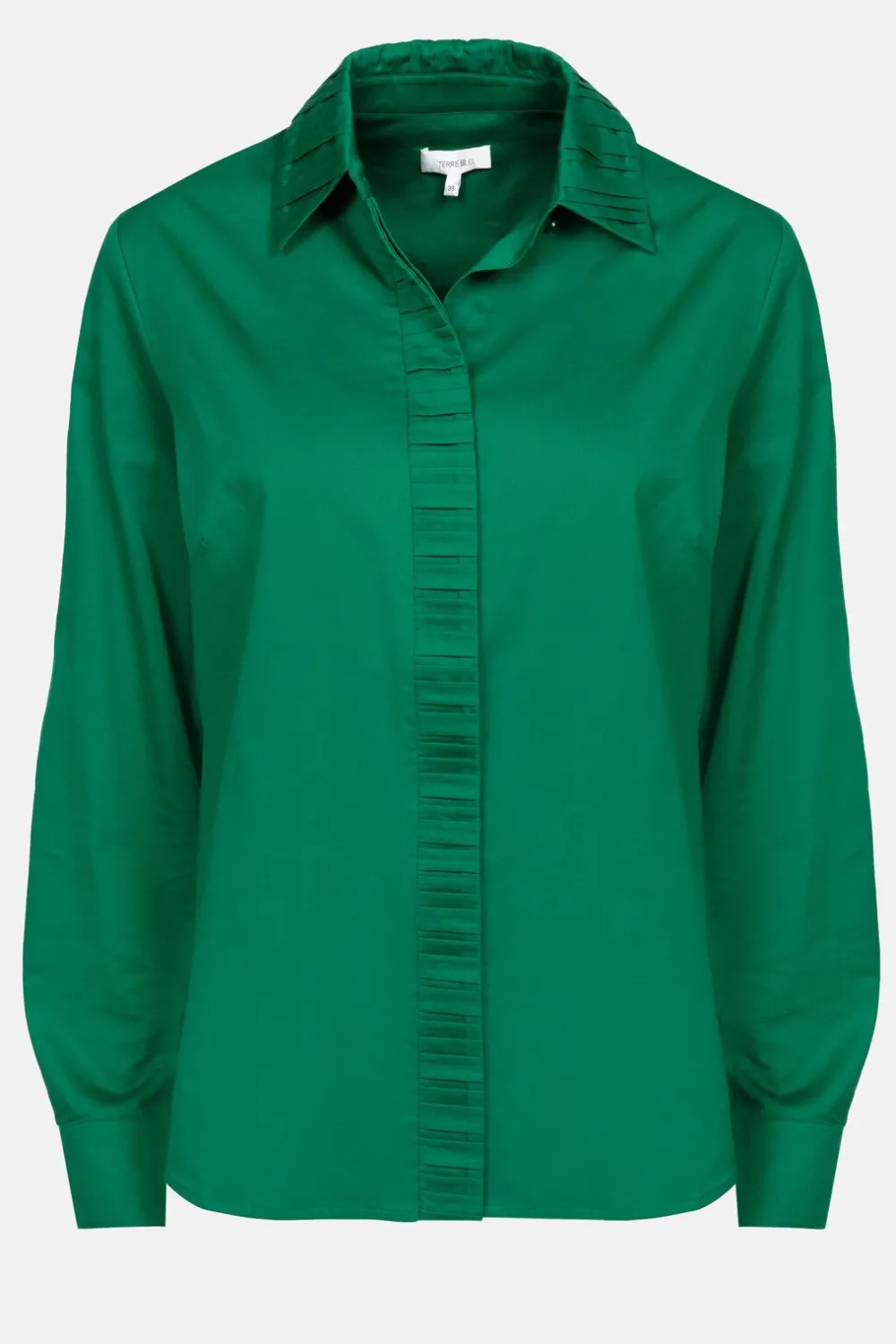 Groene Bloes In 100% Fijn Katoen.Met Chique Vouwen In De Kraag En Middenvoor.En Lange Mouwen Met Twee Groene Manchetknop…