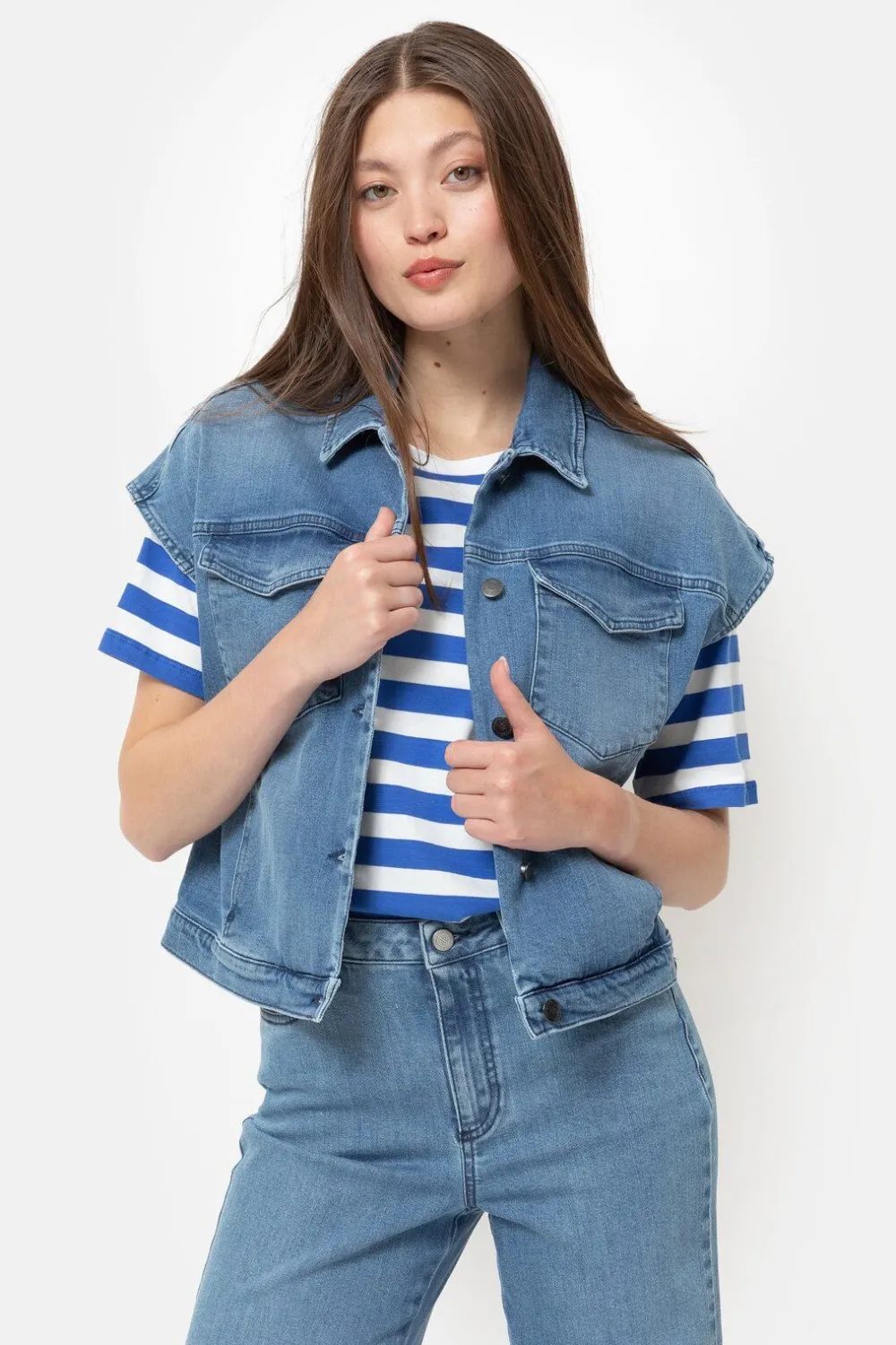 Style Met Een Ecru Bloes, Pull Met Blauwe Strepen, …