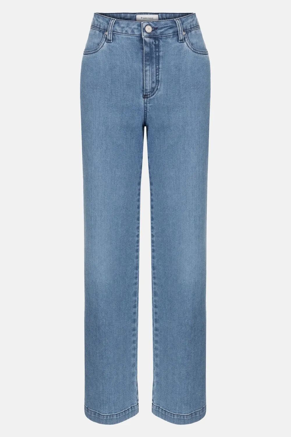 Lichtblauwe Denimbroek In Katoen Met Stretch.Een Modieuze Straight Fit Met Wijde Broekspijpen.Style Met Een Ecru Bloes, …