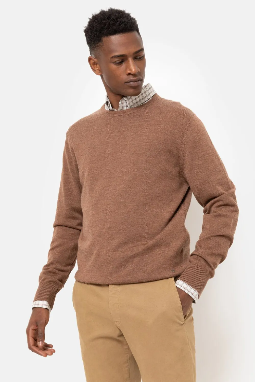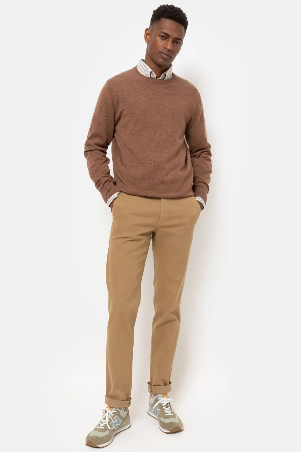 Draag Casual En Chic Boven Een Beige Geruit Hemd.
