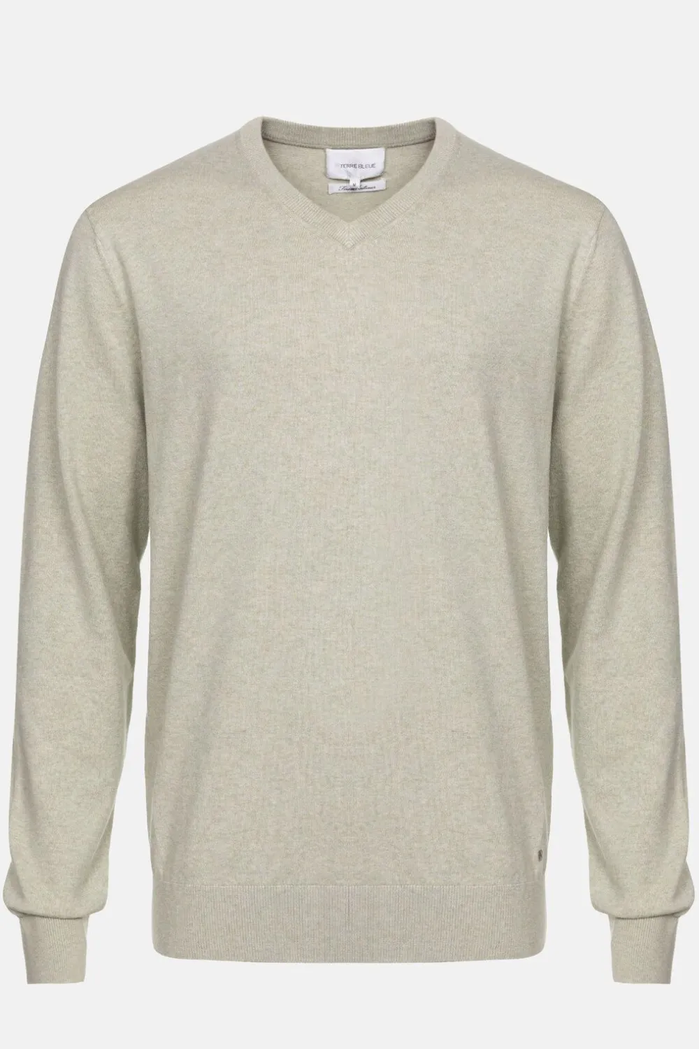 Licht Kaki Tricot Sweater In Een Fijne Katoenmix.Een Comfortabele Fit Met Een Stijlvolle V-Hals.Modieus Boven Een Hemd M…