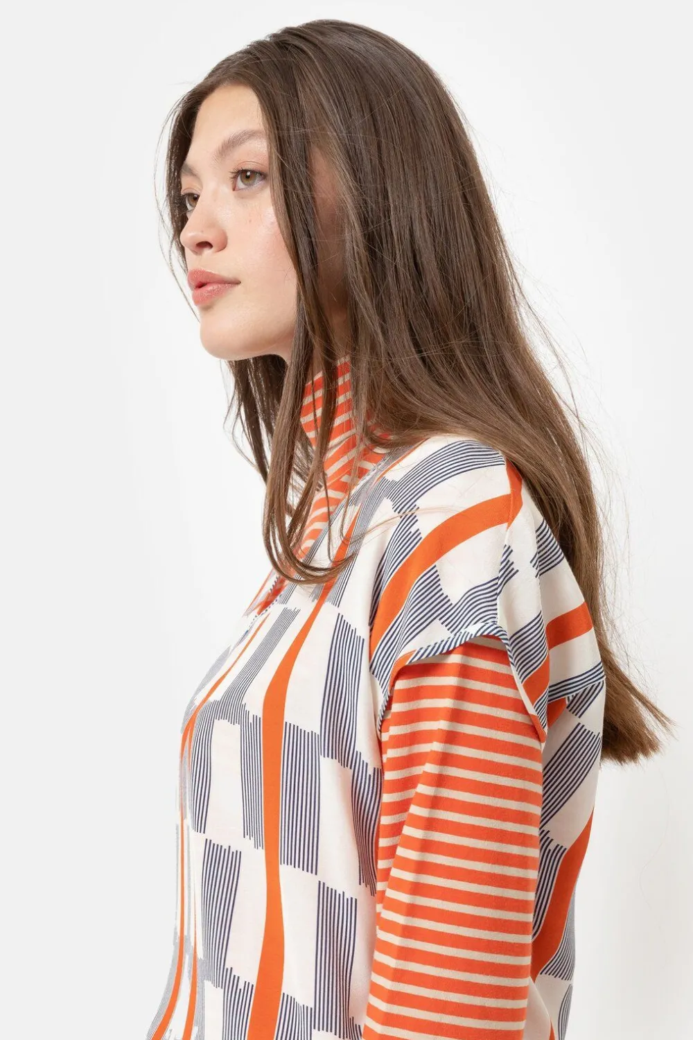 Oranje Gestreepte Bloesje In 100% Fijne Viscose.