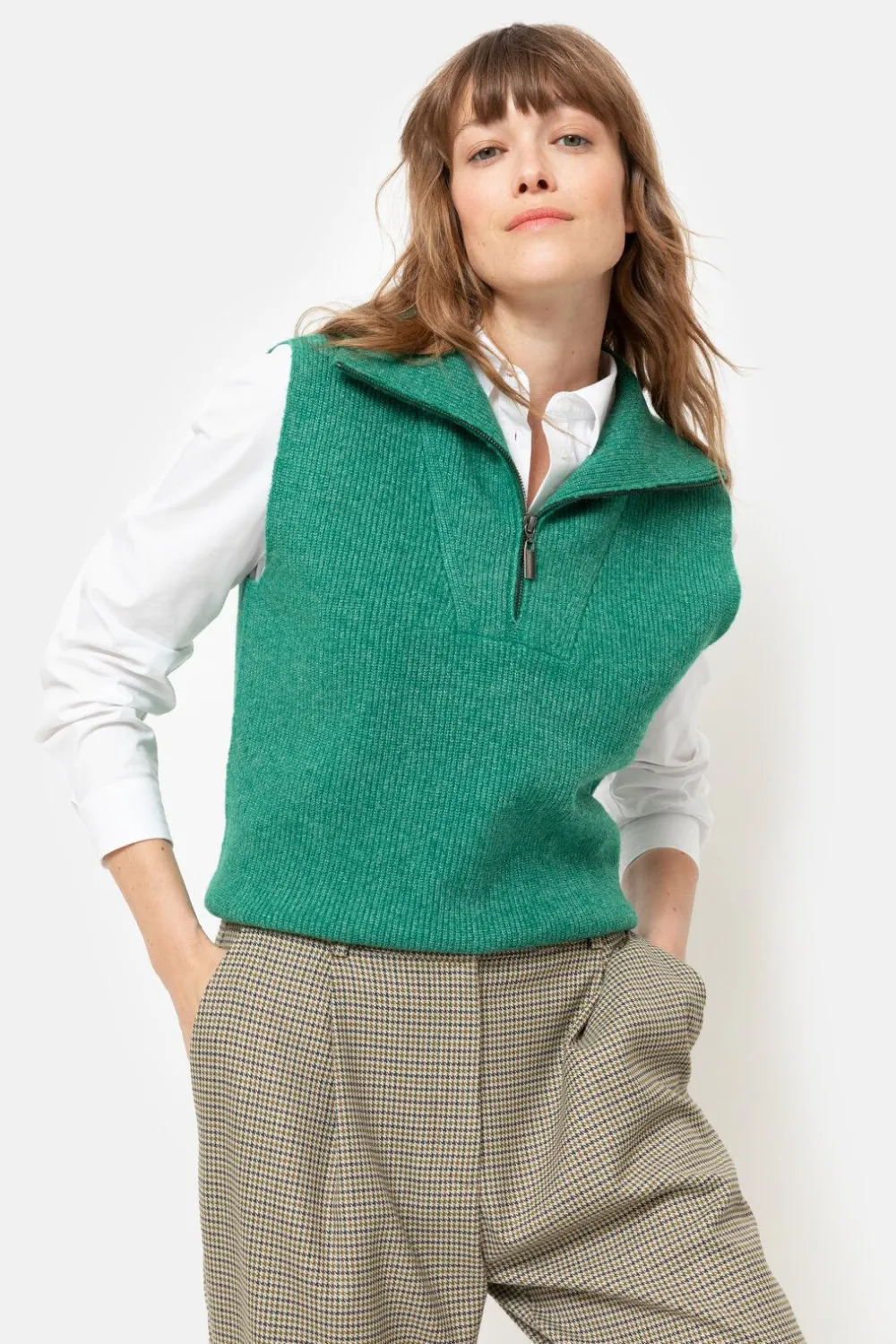 Stijlvol Met Een Groene Debardeur En Beige Mantel.