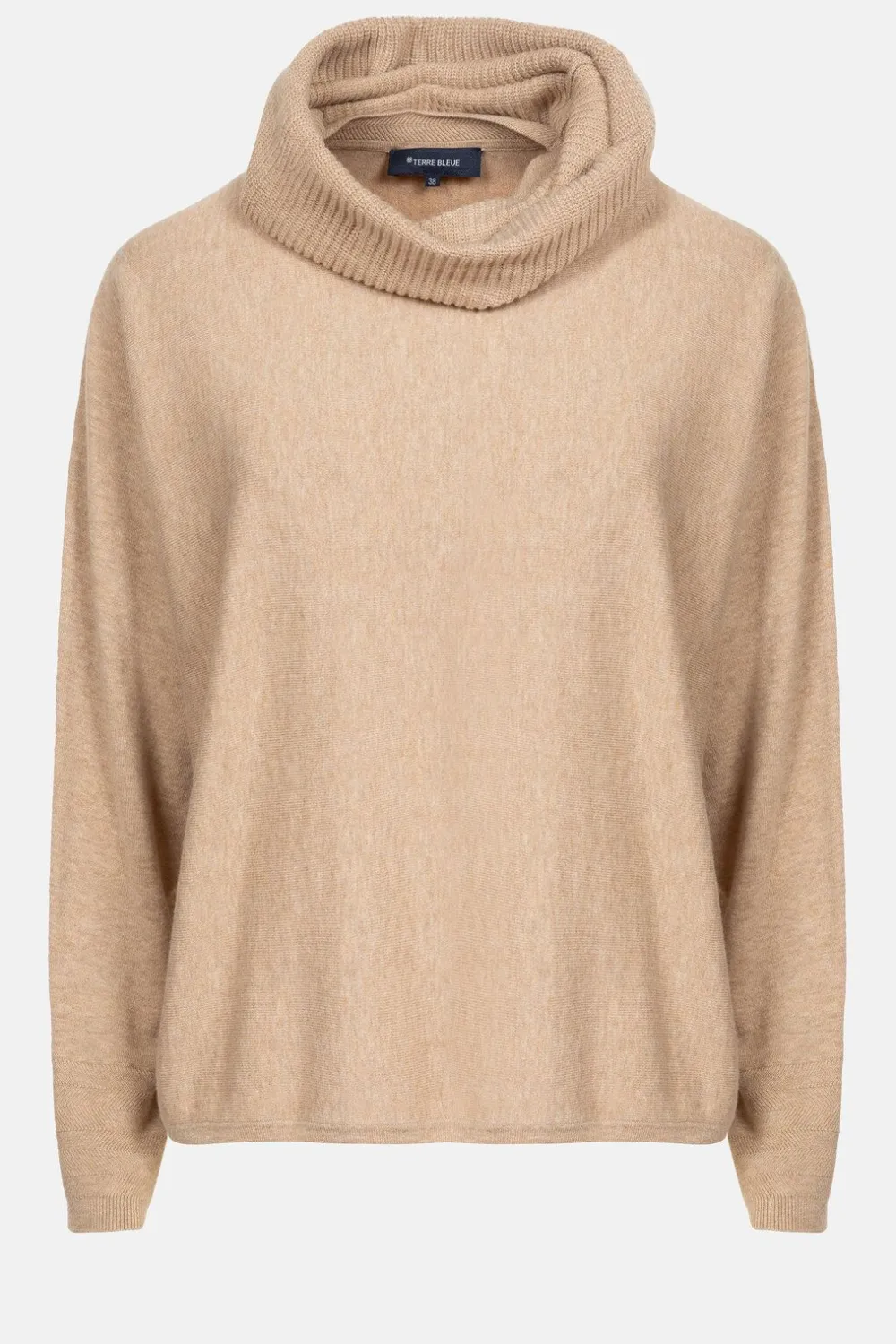 Donkerbeige Trui In Tricot Van O.M. Katoen.Met Lange Vleermuismouwen En Brede Manchetten.Draag De Pull Met Of Zonder De …