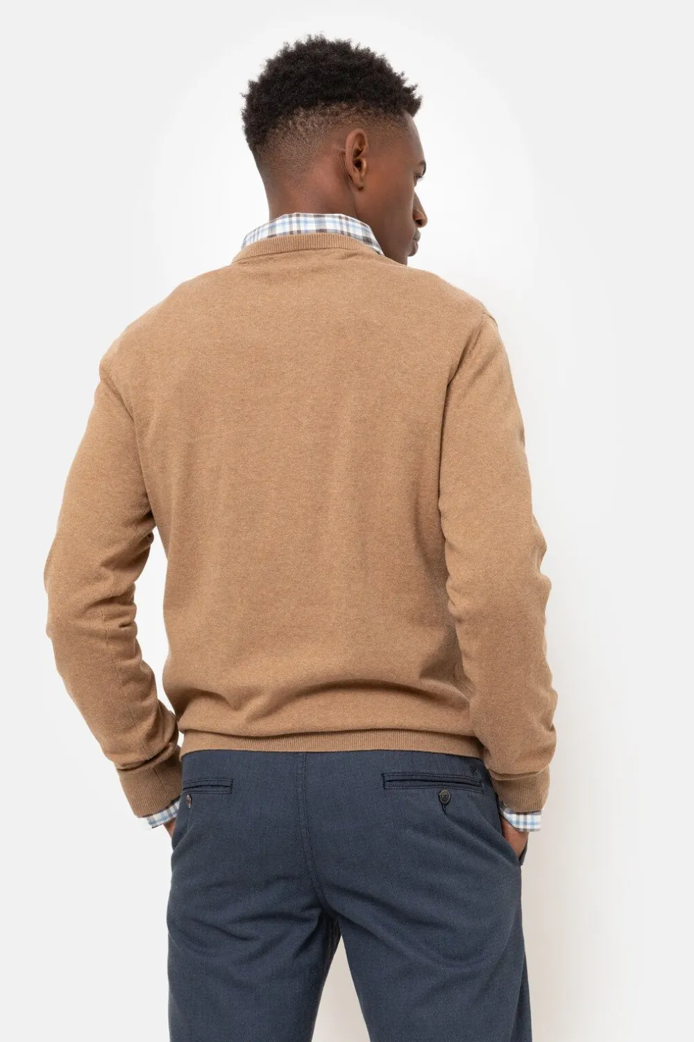Camel Bruine Pull In Een Fijne, Elastische Katoenmix. Comfortabele Snit Met Een V-Hals En Elastiekboord.Match Met Een Gr…