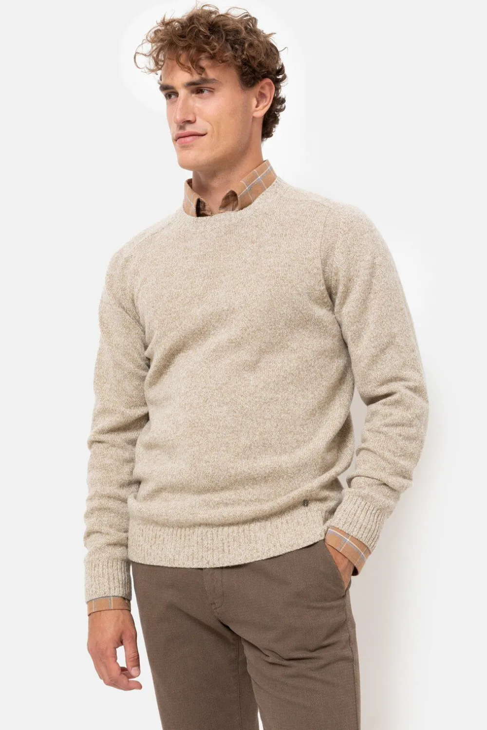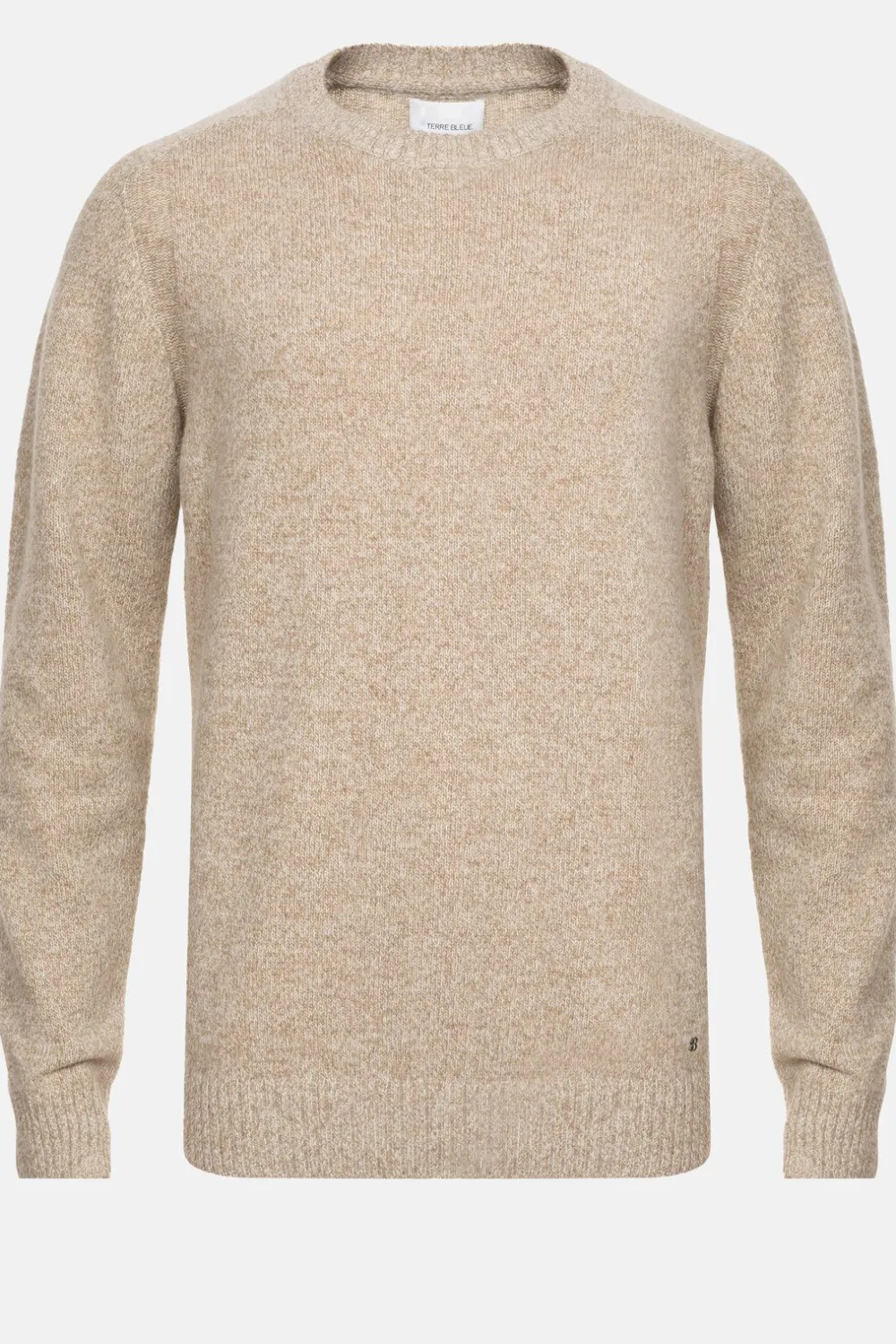 Beige Gemeleerde Trui In Wol En Gerecycled Nylon.