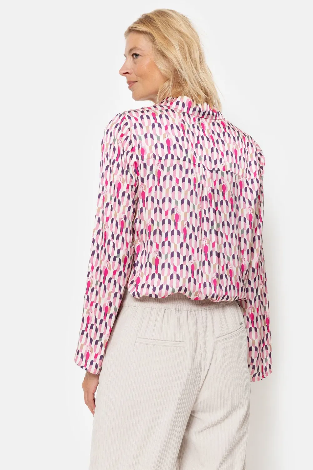 Roze Dames Blouse In O.A. Ecovero Viscose.Een Subtiel Glanzende Snit Met Een Retroprint.Losse, Rechte Mouwen En Twee Bor…