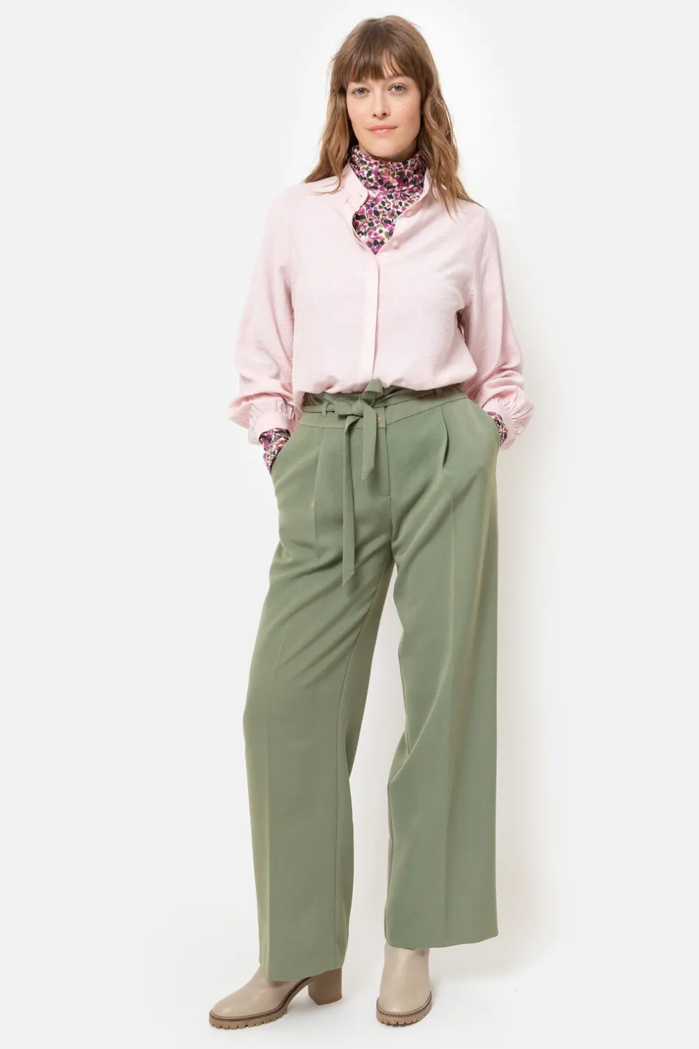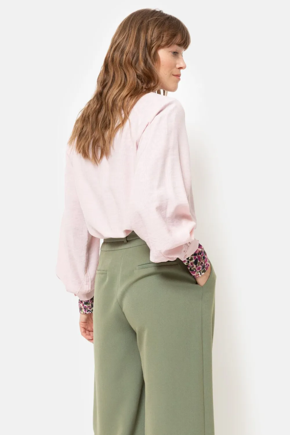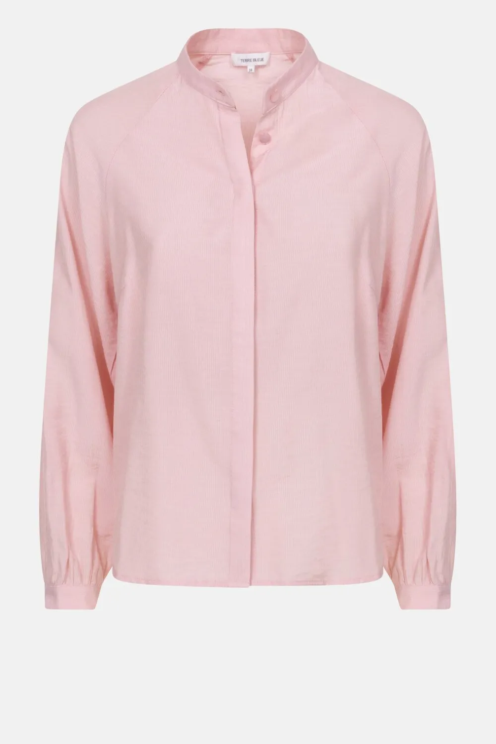Lila Bloesje In Een Viscosemix Met Fijne Strepen.