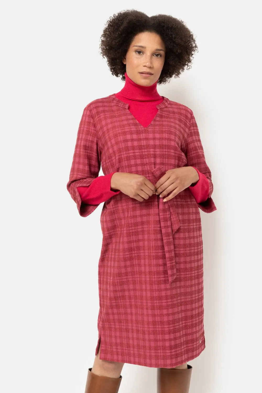 Bordeaux Geruit Kleedje Tot Aan De Knie.Een Losse Snit Met Een Elegante V-Hals En Taillelint.En 3/4 Mouwen Met Manchette…