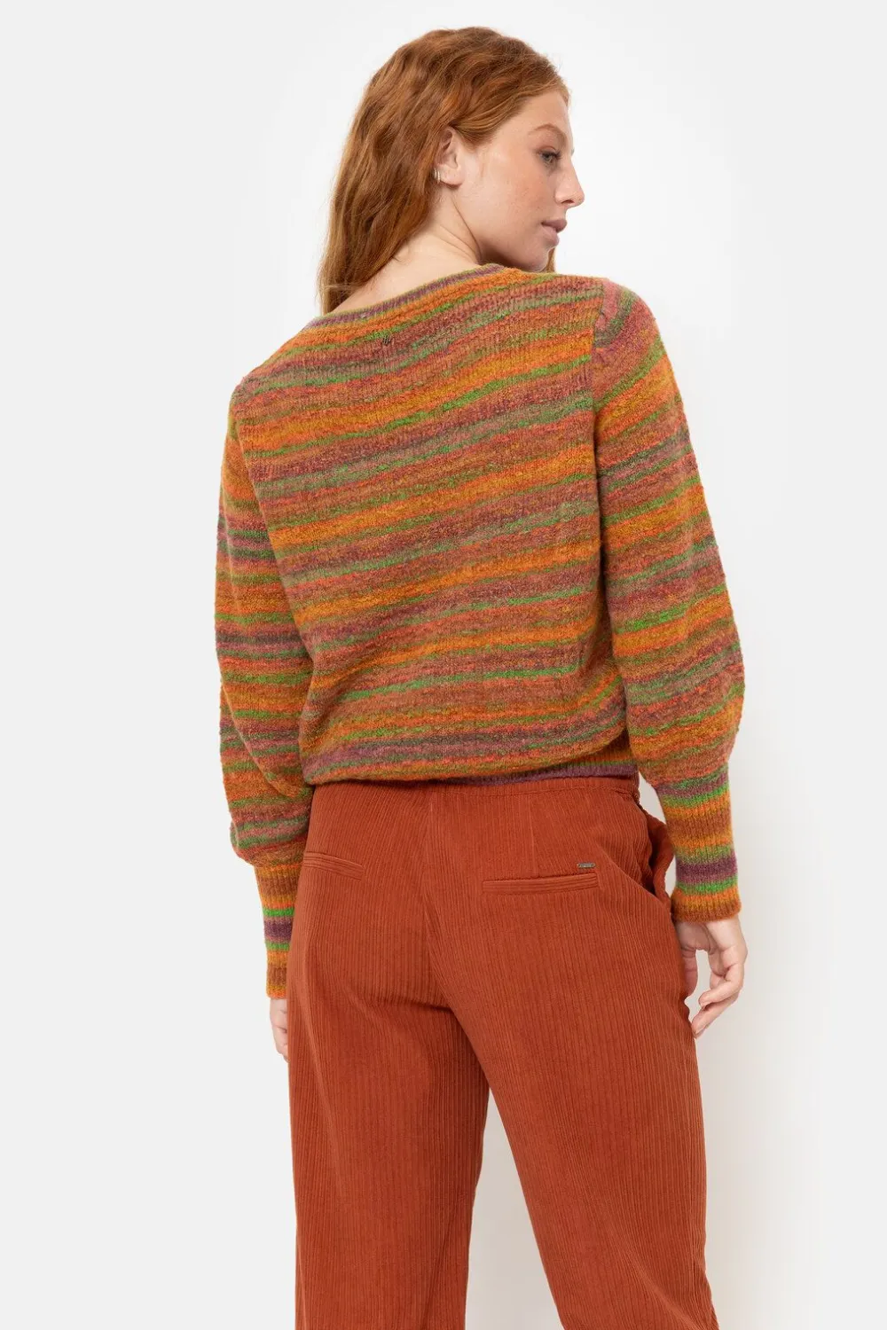Bruin-Oranje Gebreide Damestrui Met Streepjes.