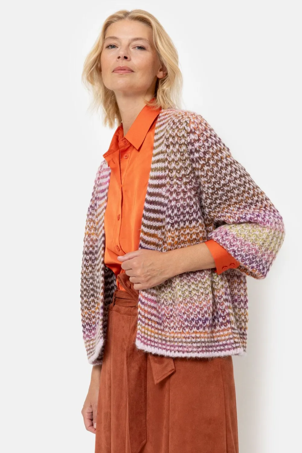 Kort Gebreid Gilet Met Paars-Oranje Strepen.Een Losjes Vallende Snit Met Een Handknitted Look.Combineer Stijlvol Met Don…