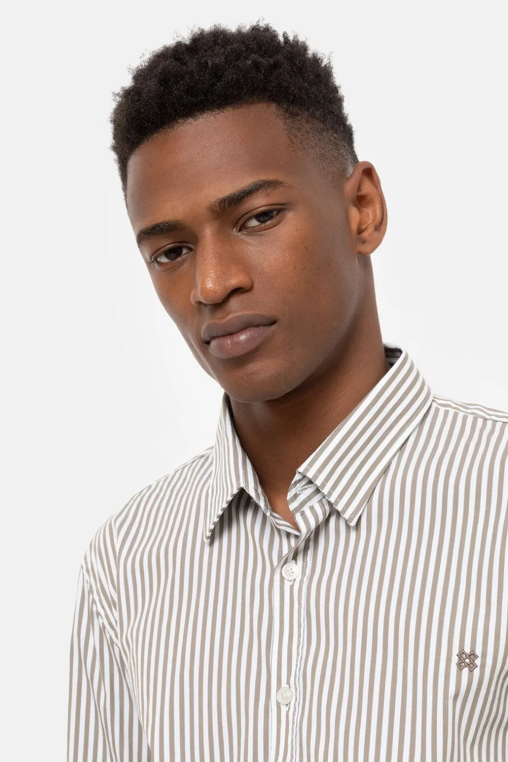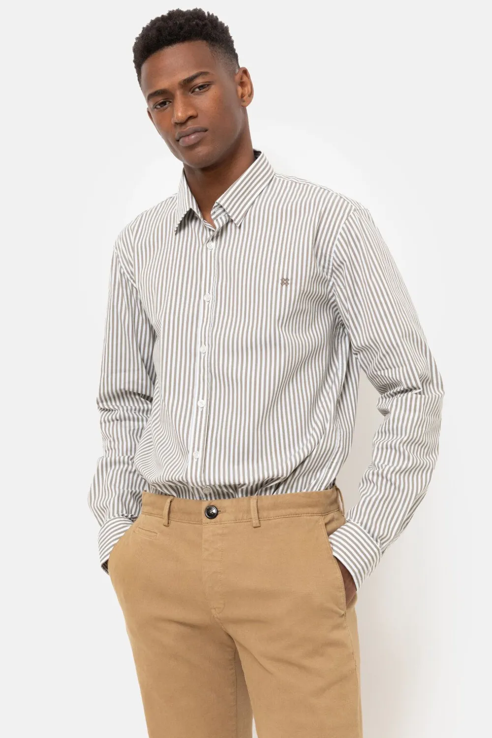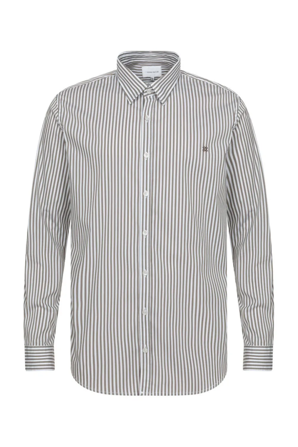 Grijsbruin Gestreept Hemd In Een Fijne Katoenmix.