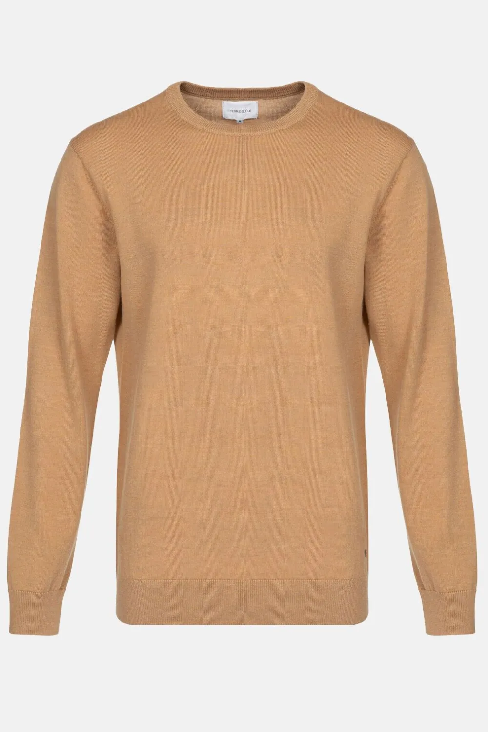 Lichtbruine Heren Trui In 100% Merinowol.Een Comfortabele Snit Met Een Ronde Hals.Casual En Chic Boven Een Bruin Geruite…
