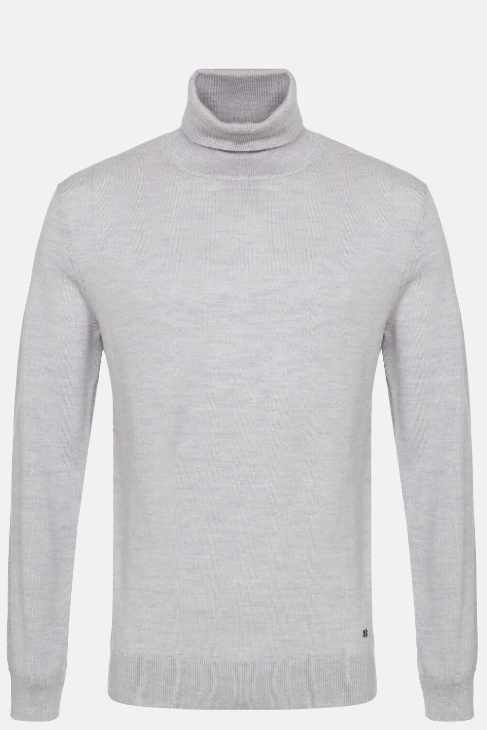 Lichtgrijze Heren Trui In 100% Merinowol.Comfortabele Regular Fit Met Een Stijlvolle Rolkraag.Casual En Chic Onder Een K…