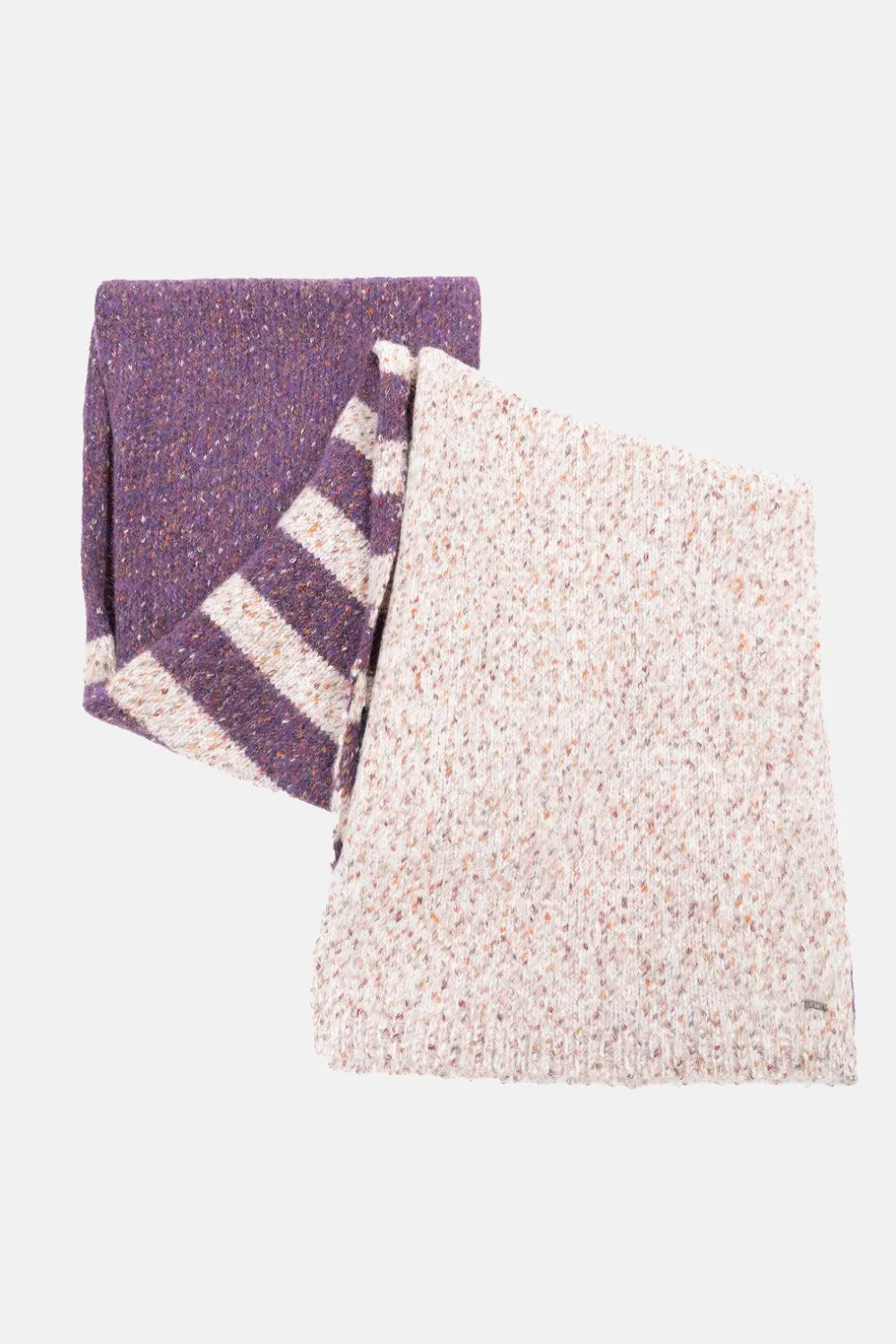 Beige-Paarse Wintersjaal In Een Warme Wolmix.Gemeleerde Look Met Strepen En Colour Blocks.Stylish Met Een Cremekleurige …