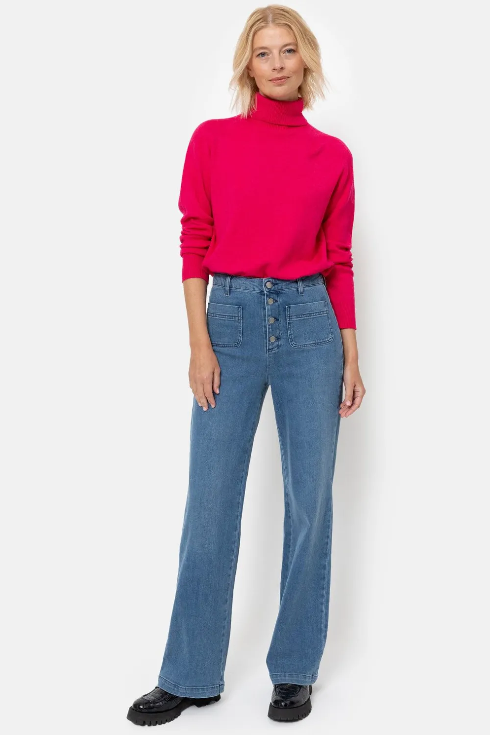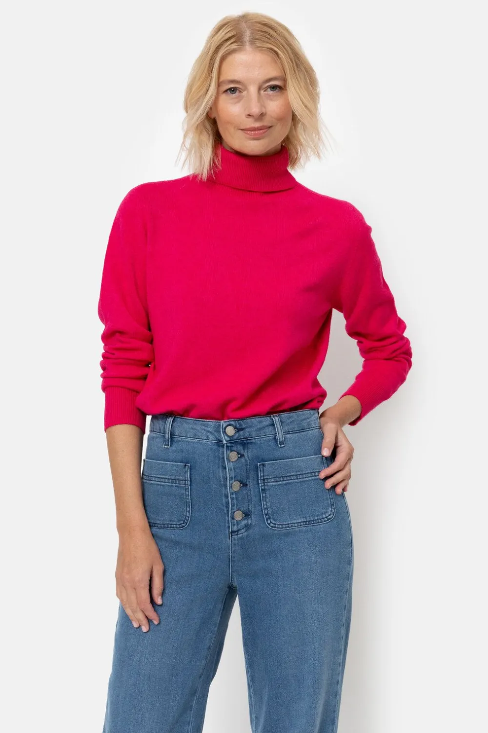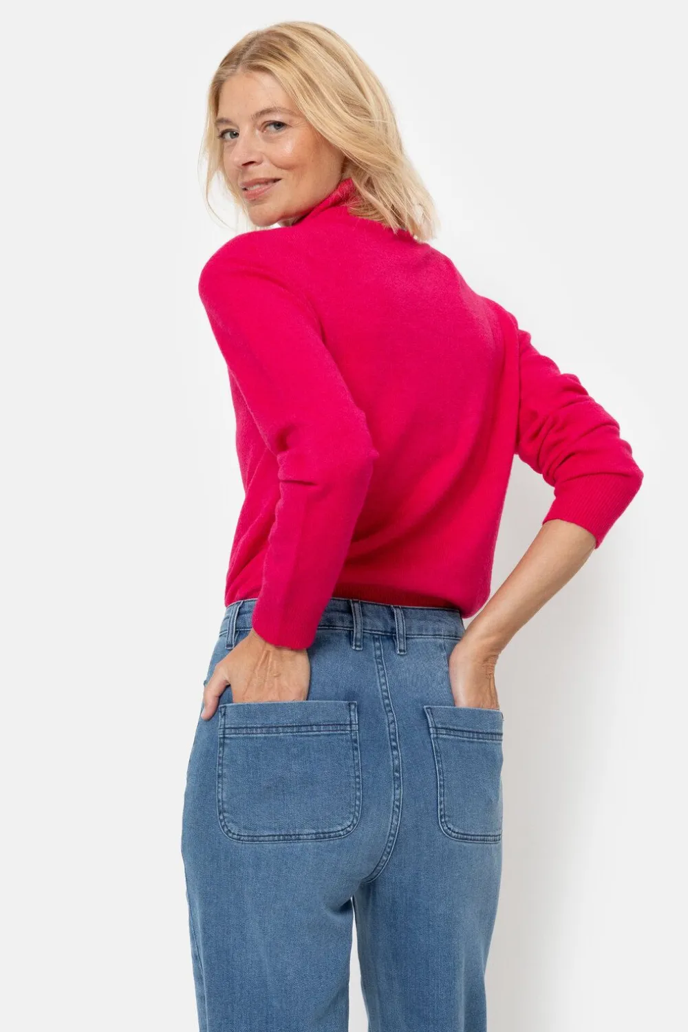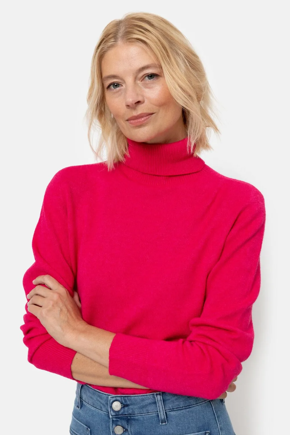 Felroze Coltrui In Een Elastische Viscosemix.Een Korte, Casual Fit Met Een Hoge Rolkraag.En Lange Mouwen Met Een Elegant…