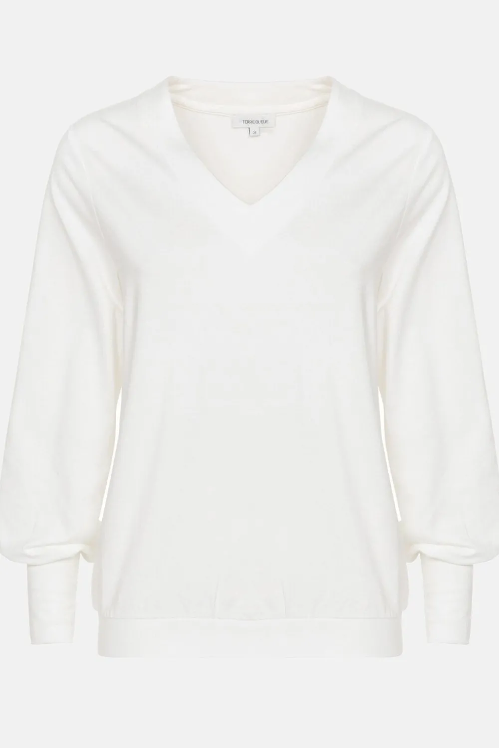 Ecru Dames T-Shirt In Een Katoen- En Modalmix.Met Lange Mouwen Met Chique, Brede Manchetten.En Een Elegante, Diepe V-Hal…