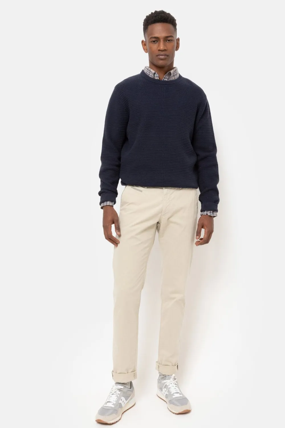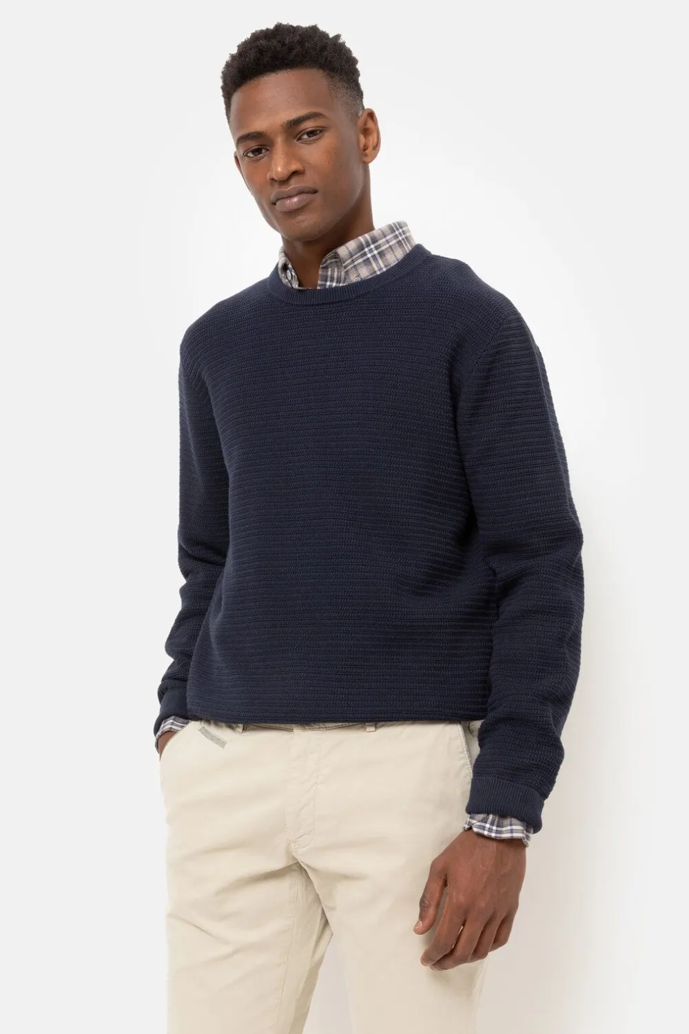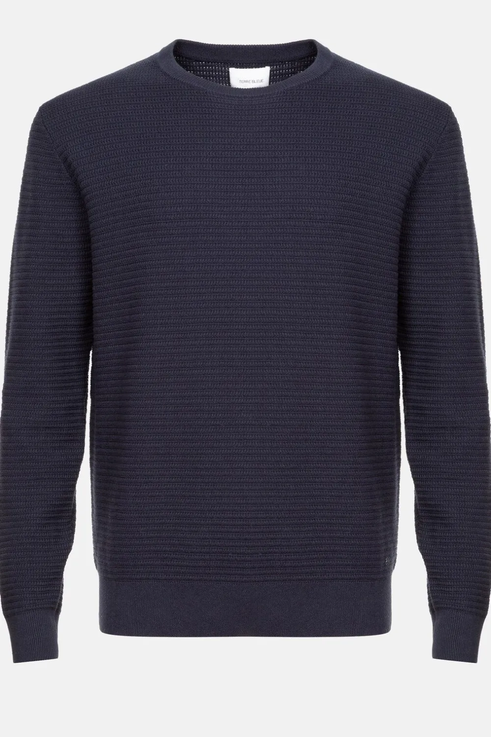 Blauwe Gebreide Mannentrui In 100% Katoen.