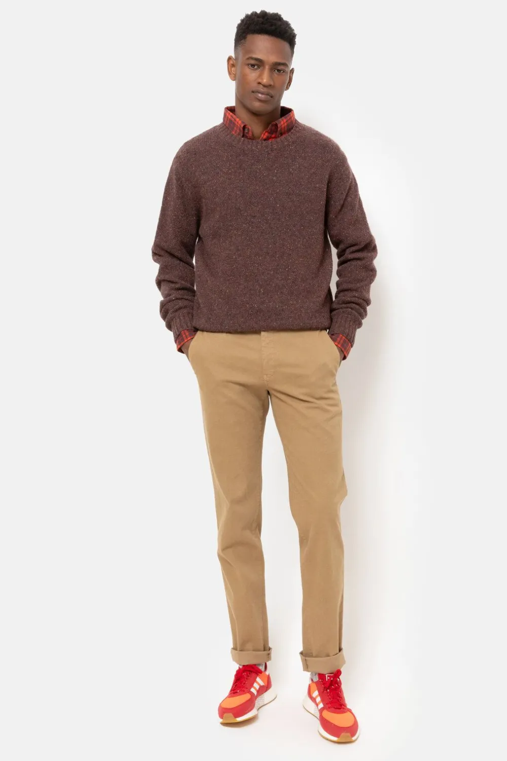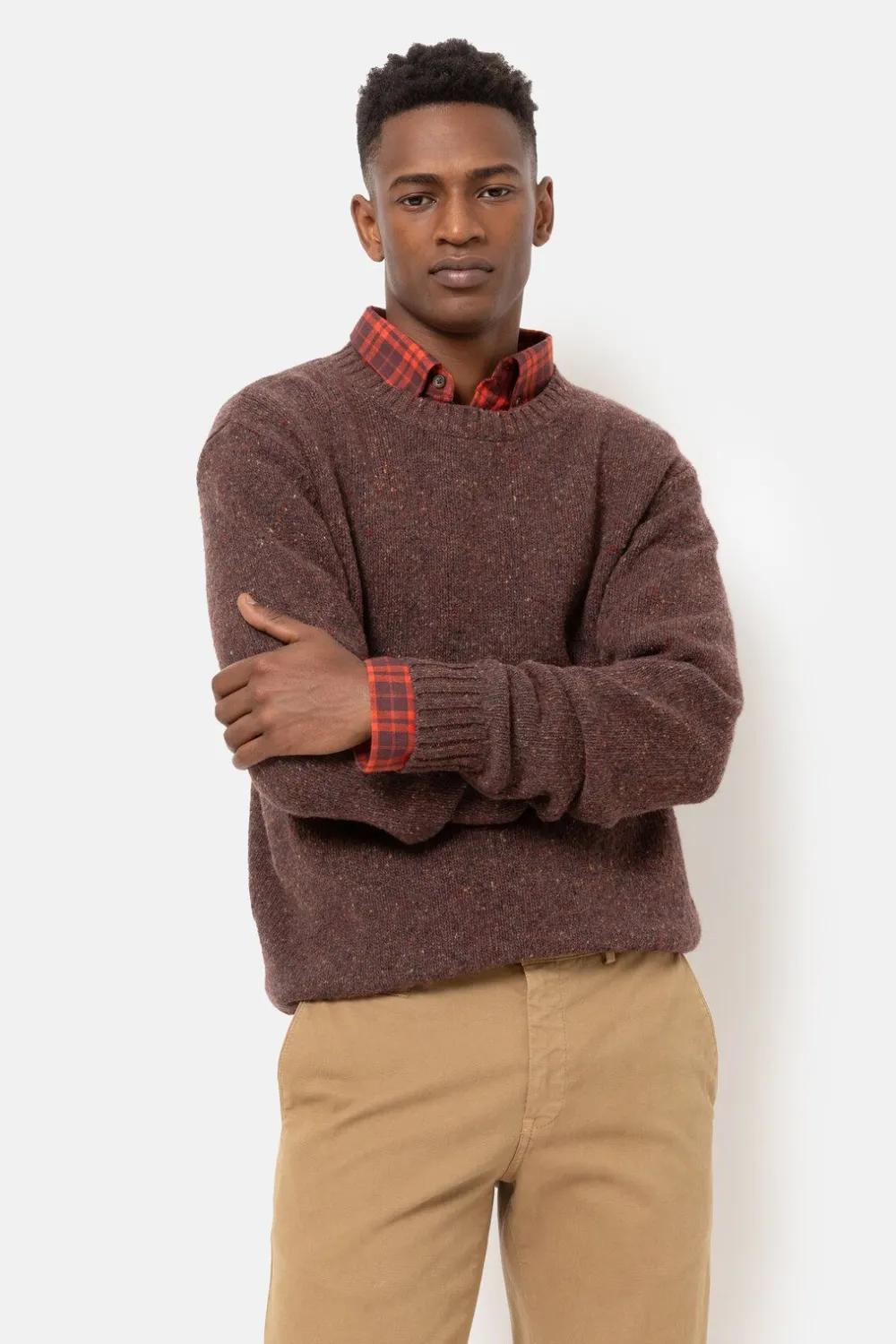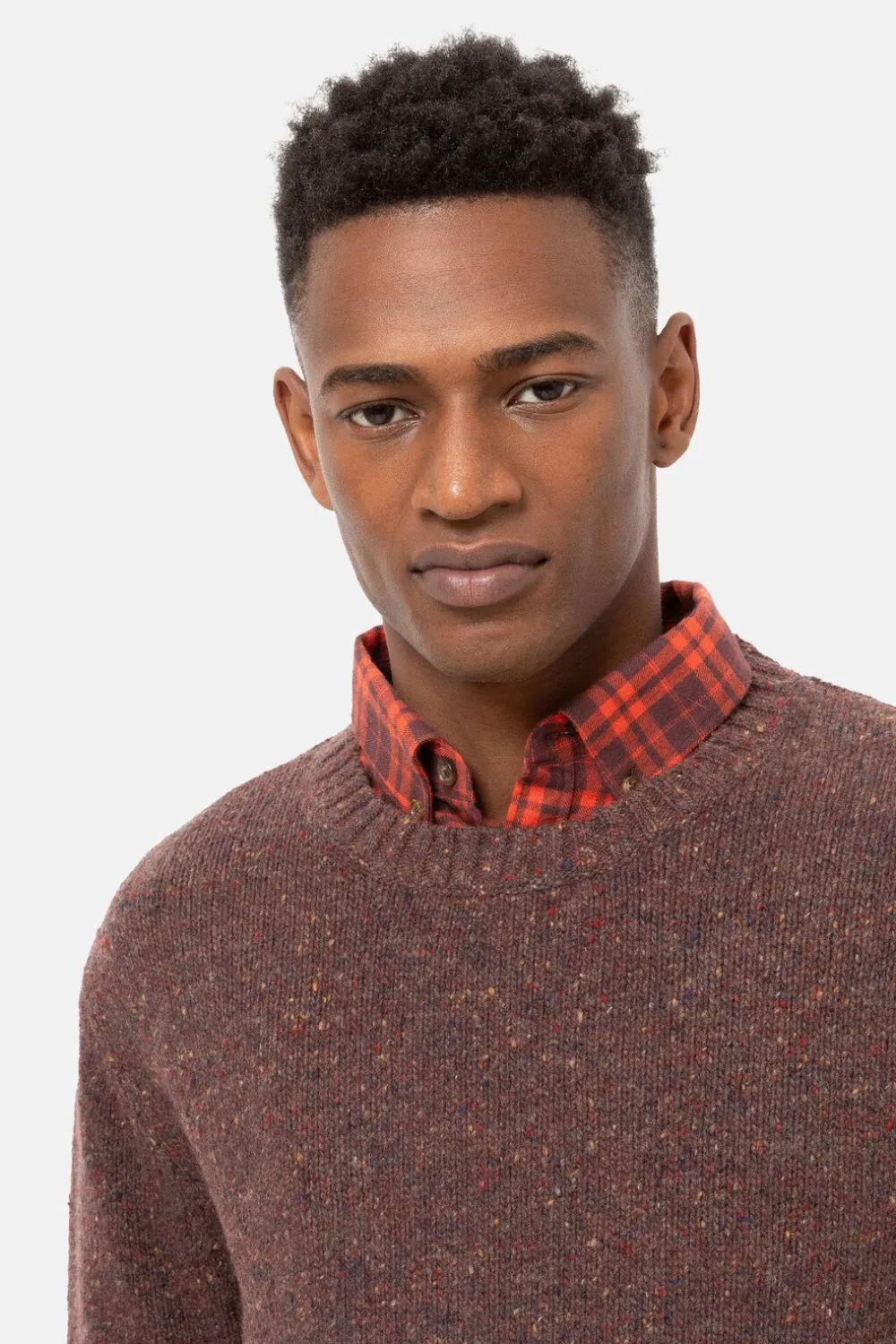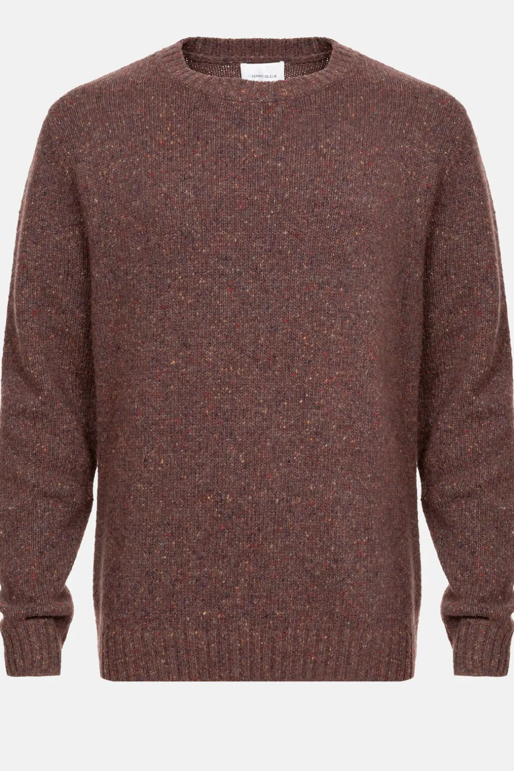 Blauwe Herentrui In Wol En Gerecycleerd Nylon.Een Snit Met Ronde Hals En Handgebreide Look.Met Rode, Blauwe En Lichtbrui…