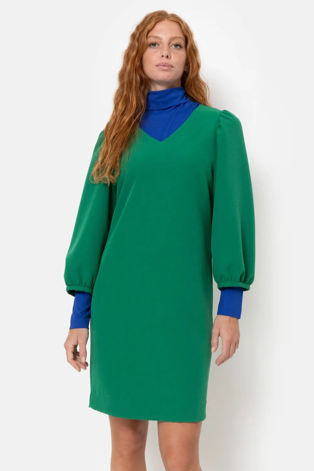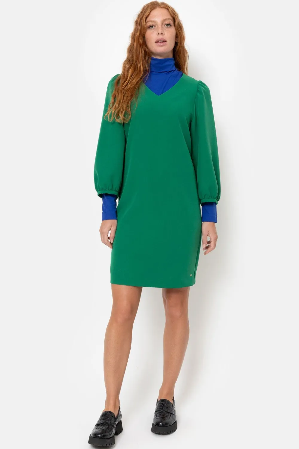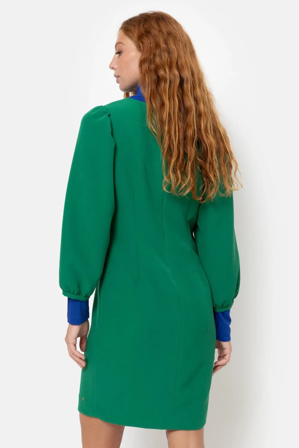 Groen Knielang Kleedje Met Een Elegante A-Lijn.Het Jurkje Heeft Een Ingewerkte Ritssluiting Op De Rug.En Ballonmouwen Me…