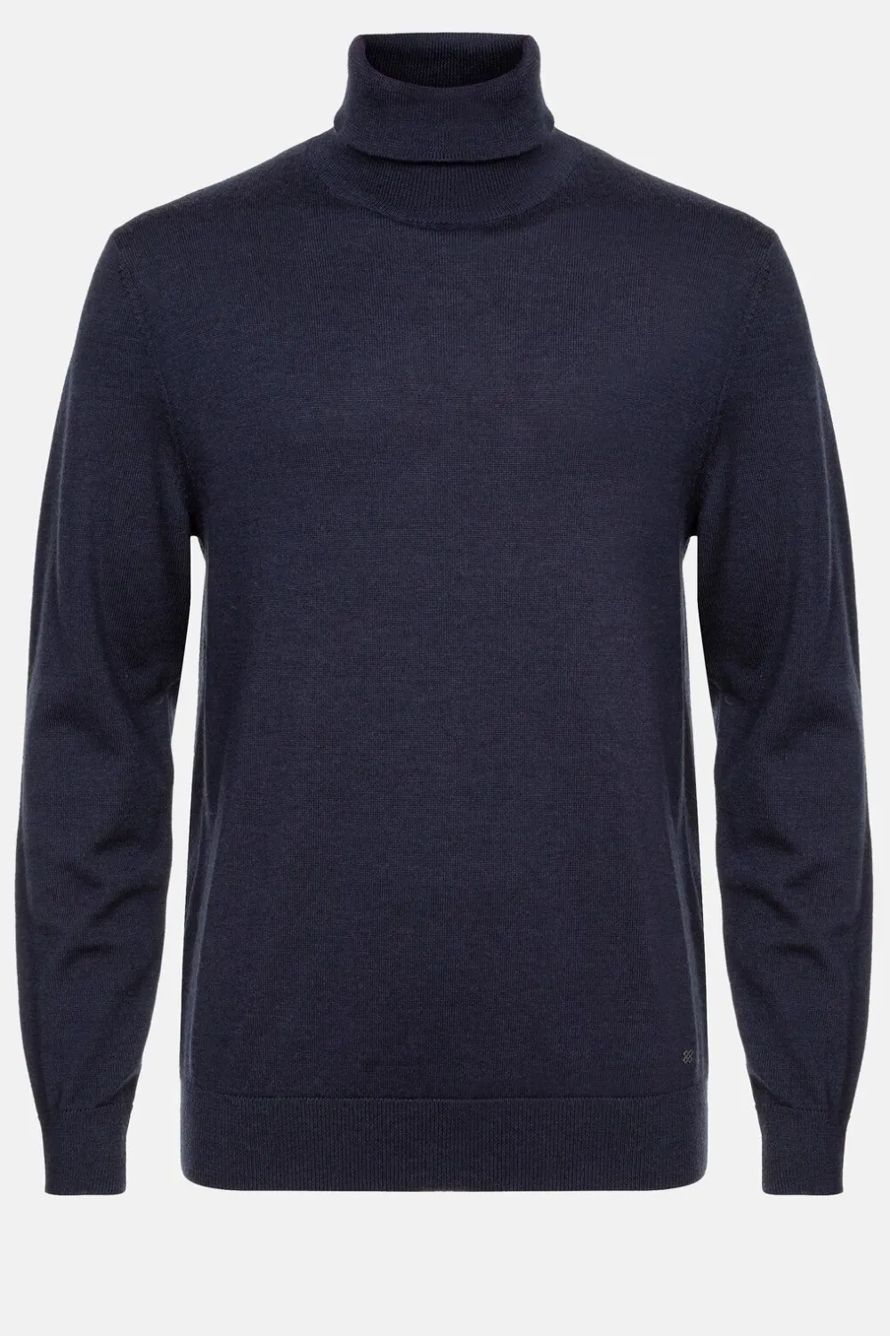 Donkerblauwe Pullover In 100% Zuivere Merinowol.Geklede Fit Met Een Rolkraag En Lange Mouwen.Met Een Elastiek In De Manc…