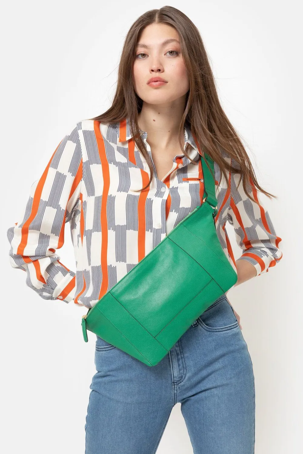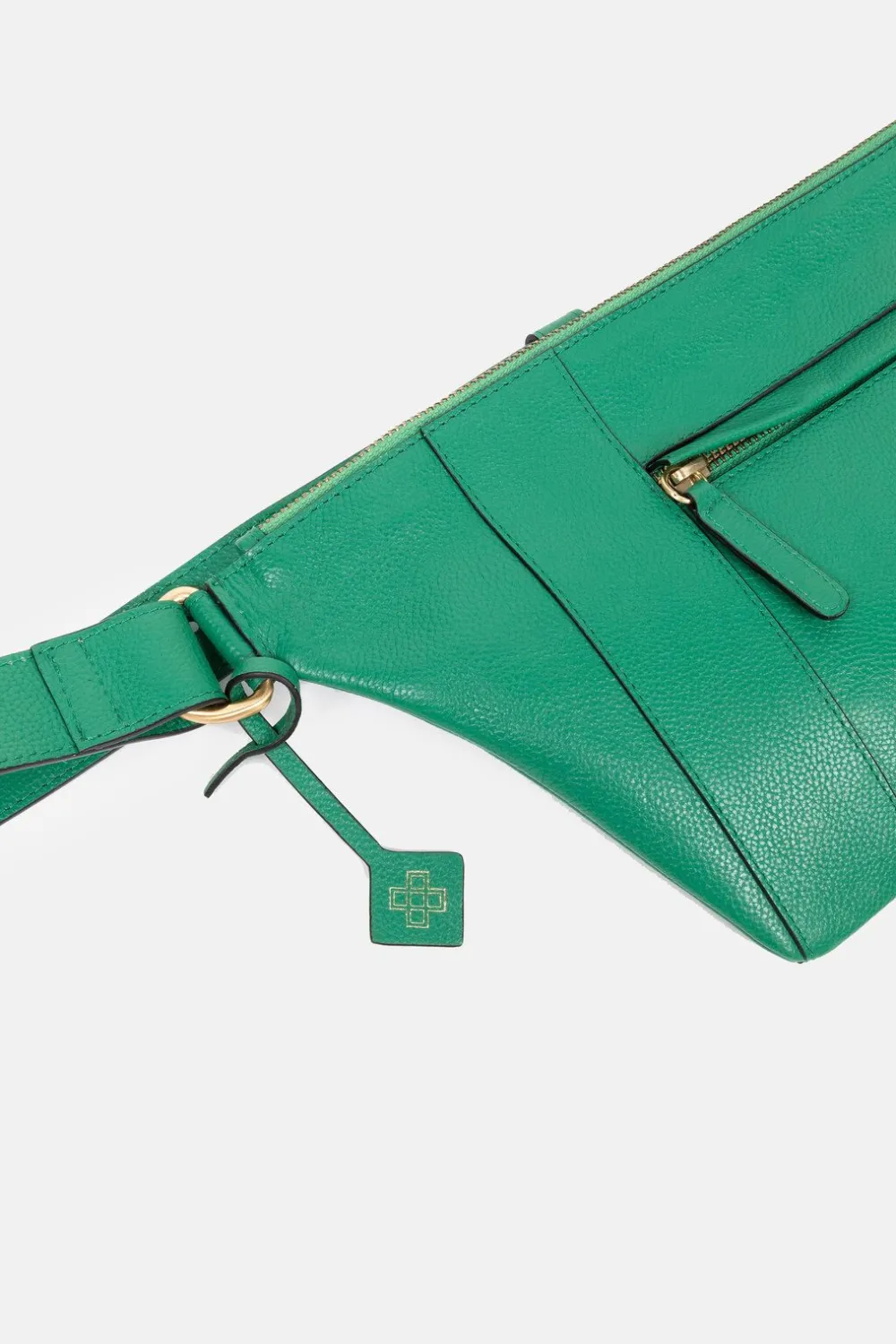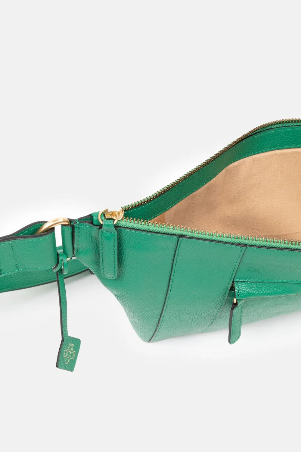Dunne Groene Handtas In 100% Leder.Een Schoudertas Met Een Brede, Verstelbare Riem.Met Een Matgouden Ritssluiting En Zij…