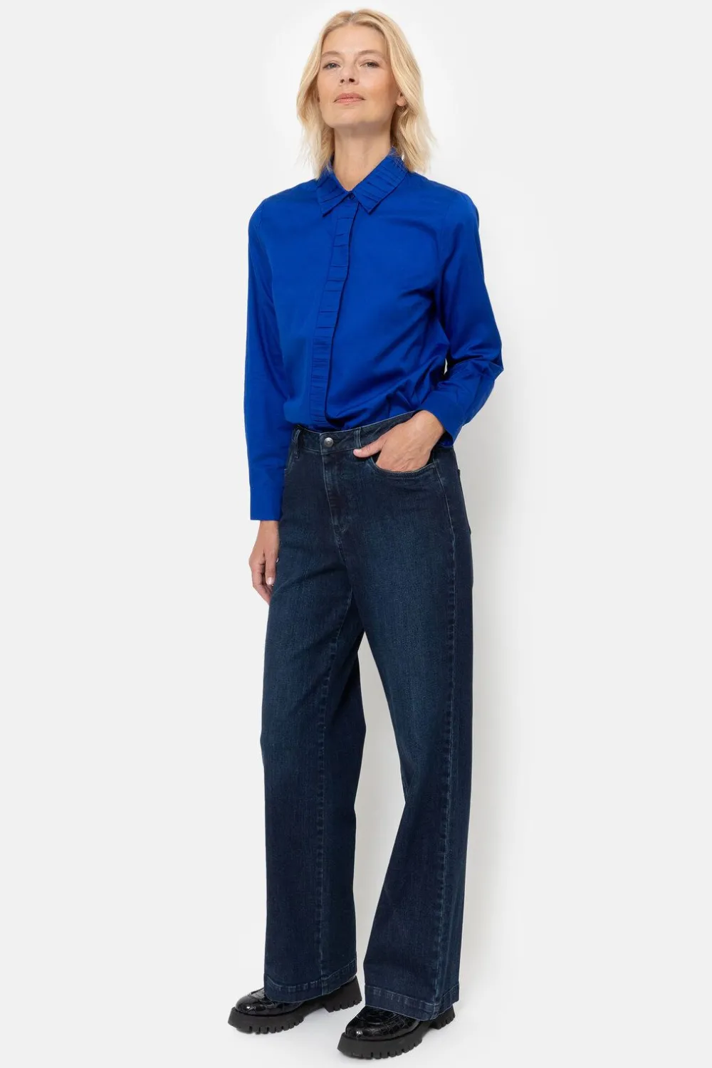 Blauwe Blouse Voor Dames, In 100% Fijn Katoen.Met Chique Vouwen In De Kraag En Middenvoor.En Lange Mouwen Met Twee Blauw…