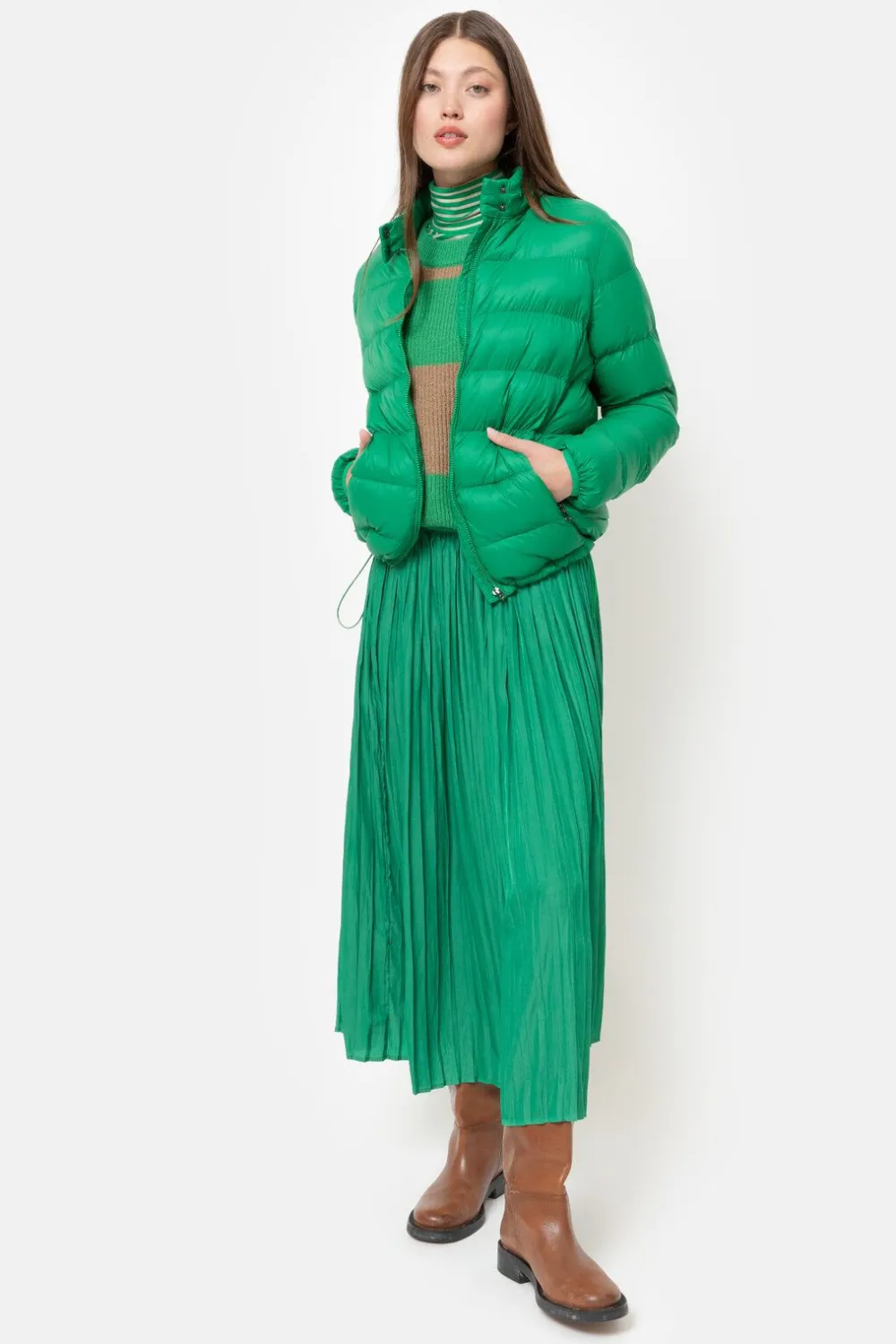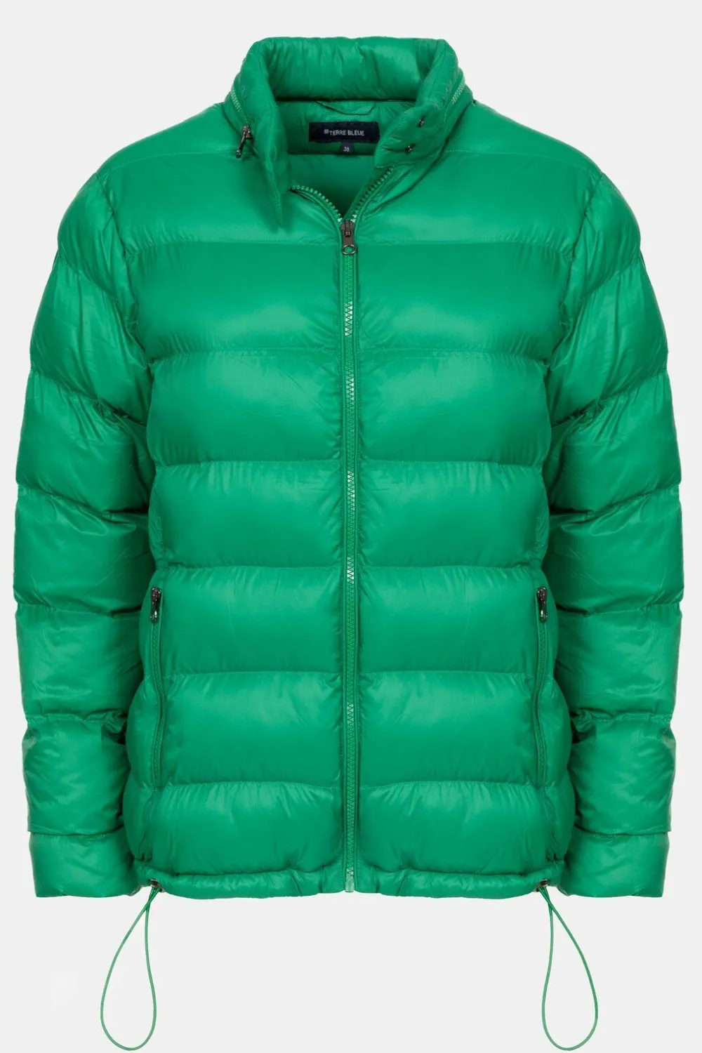Felgroene Gewatteerde Jas Met Trendy Stiksels.Korte Fit Met Opstaand Kraagje En Een Ingewerkte Kap.Pas Zelf De Taille Aa…