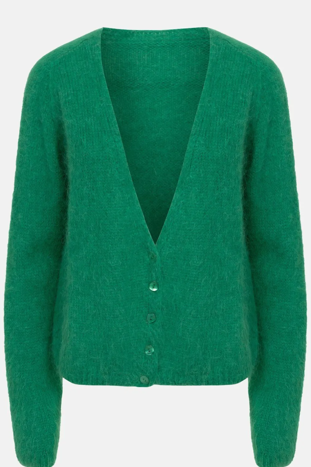 Kort Groen Gilet In Een Mix Van Zachte Alpacawol.Een Boxyfit Met Een Diepe V-Hals En Groene Knopen.Style Met Een Lichtbl…