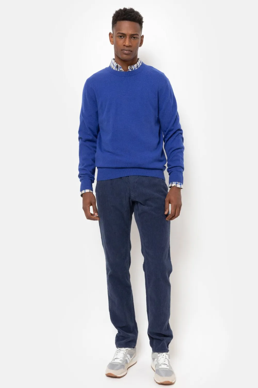 Stijlvol Met Een Donkerblauwe Broek In Ribfluweel.