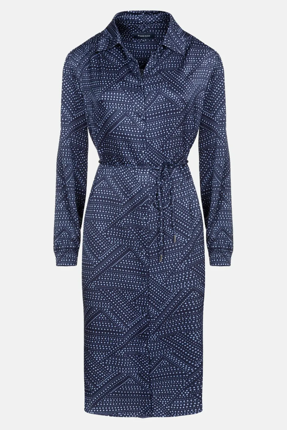 Blauw Kleedje Of Tuniek In Soepelvallend Rayon.Een Jacquardstof Met Bolletjes En Stoffen Knoopjes.Draag Als Tuniek Met E…