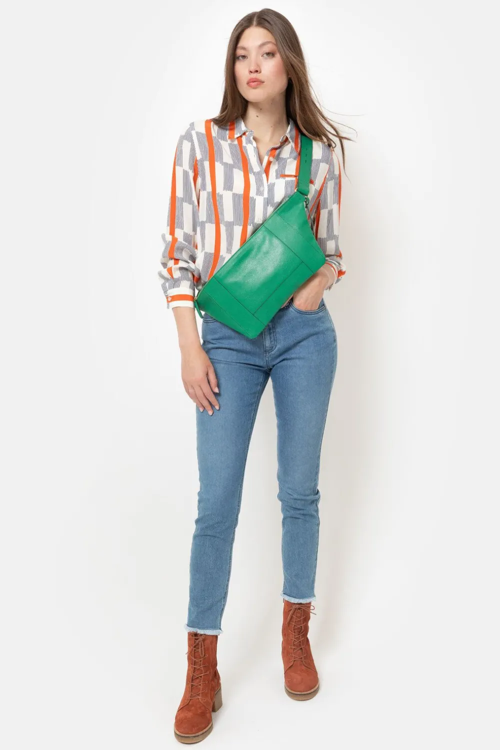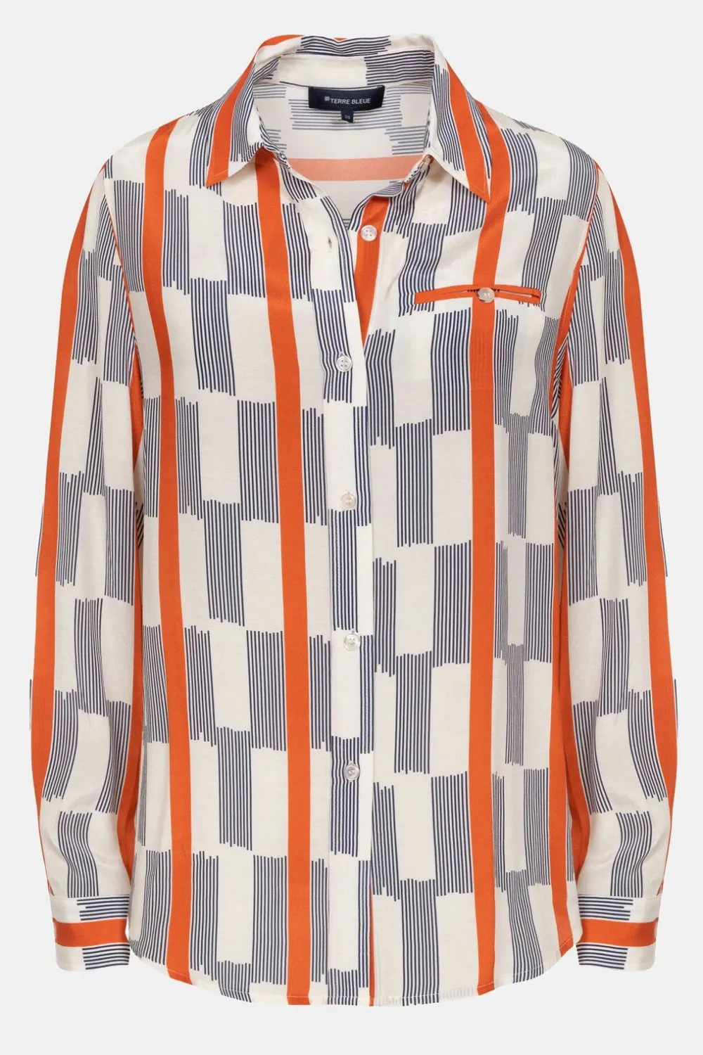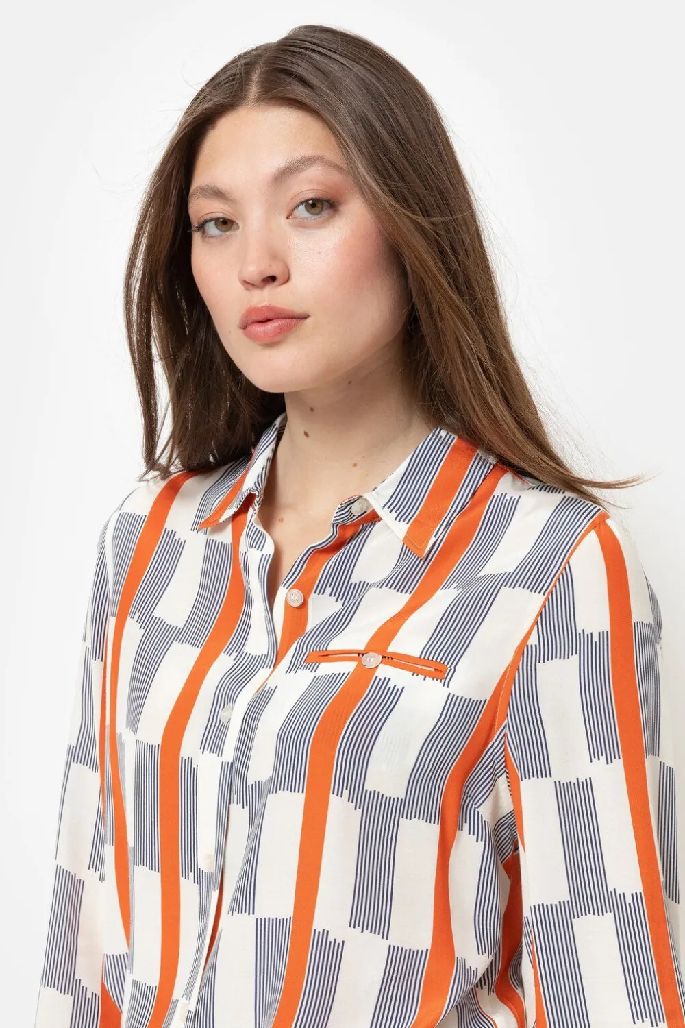 Oranje Gestreepte Blouse In 100% Fijne Viscose.