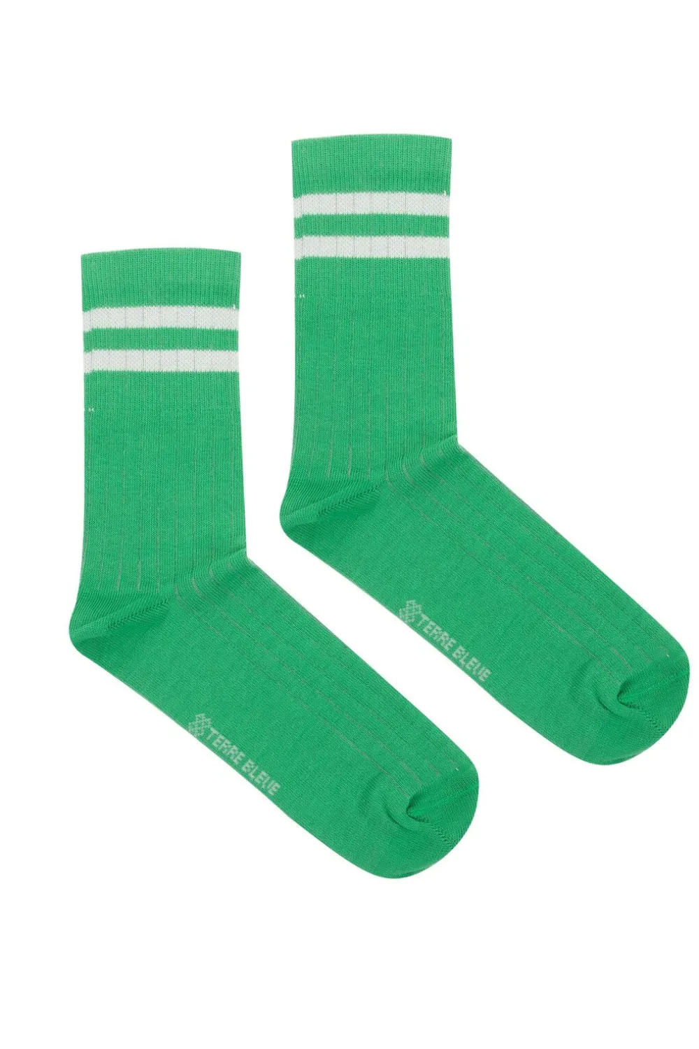 Gestreepte Groene Sokjes In 100% Katoen.Met Twee Lichtgroene Strepen Bovenaan.Match Trendy Met Een Outfit In Roze, Muntg…