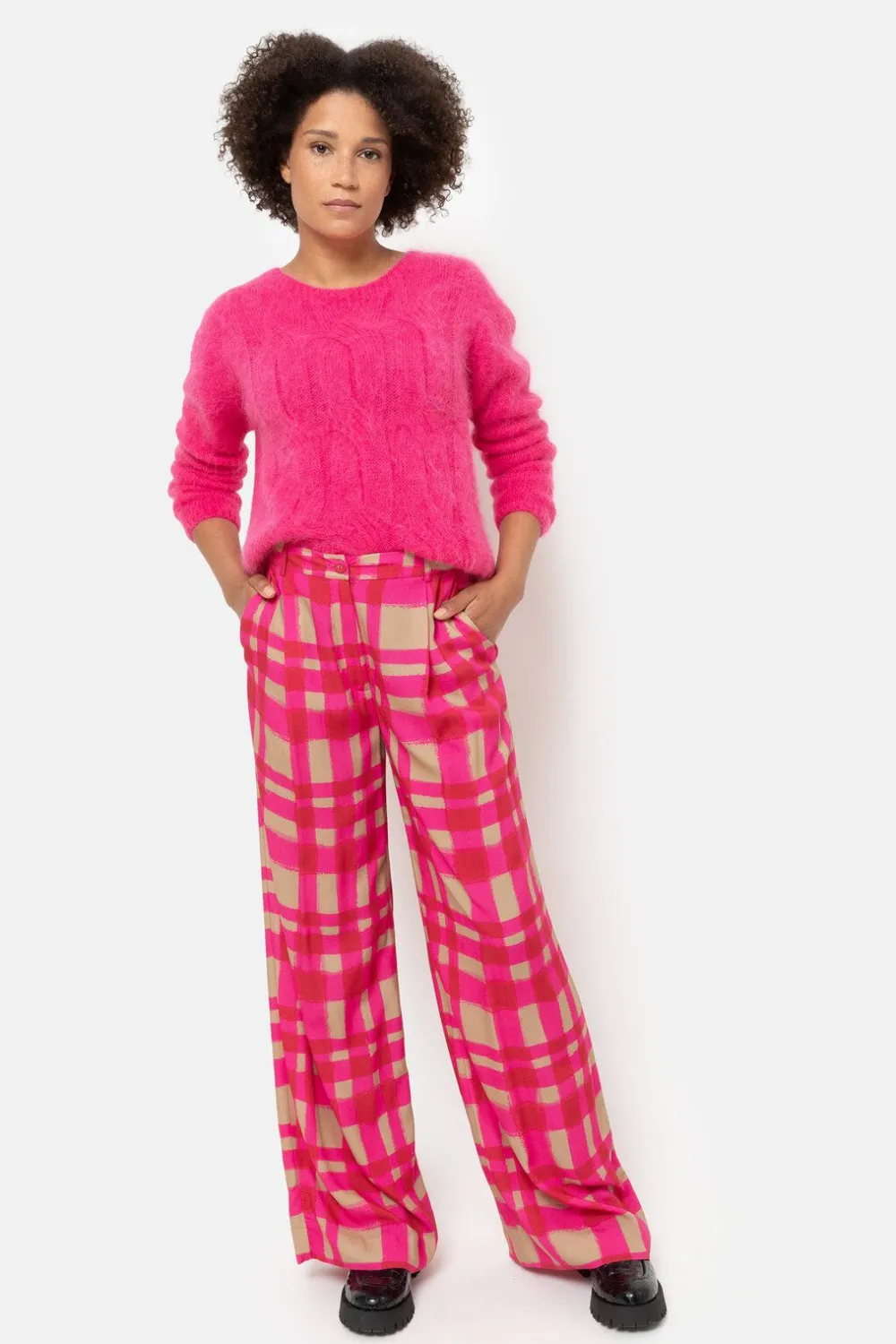 Trendy Met Een Fuchsia Geruite Blouse, Roze Pull, …