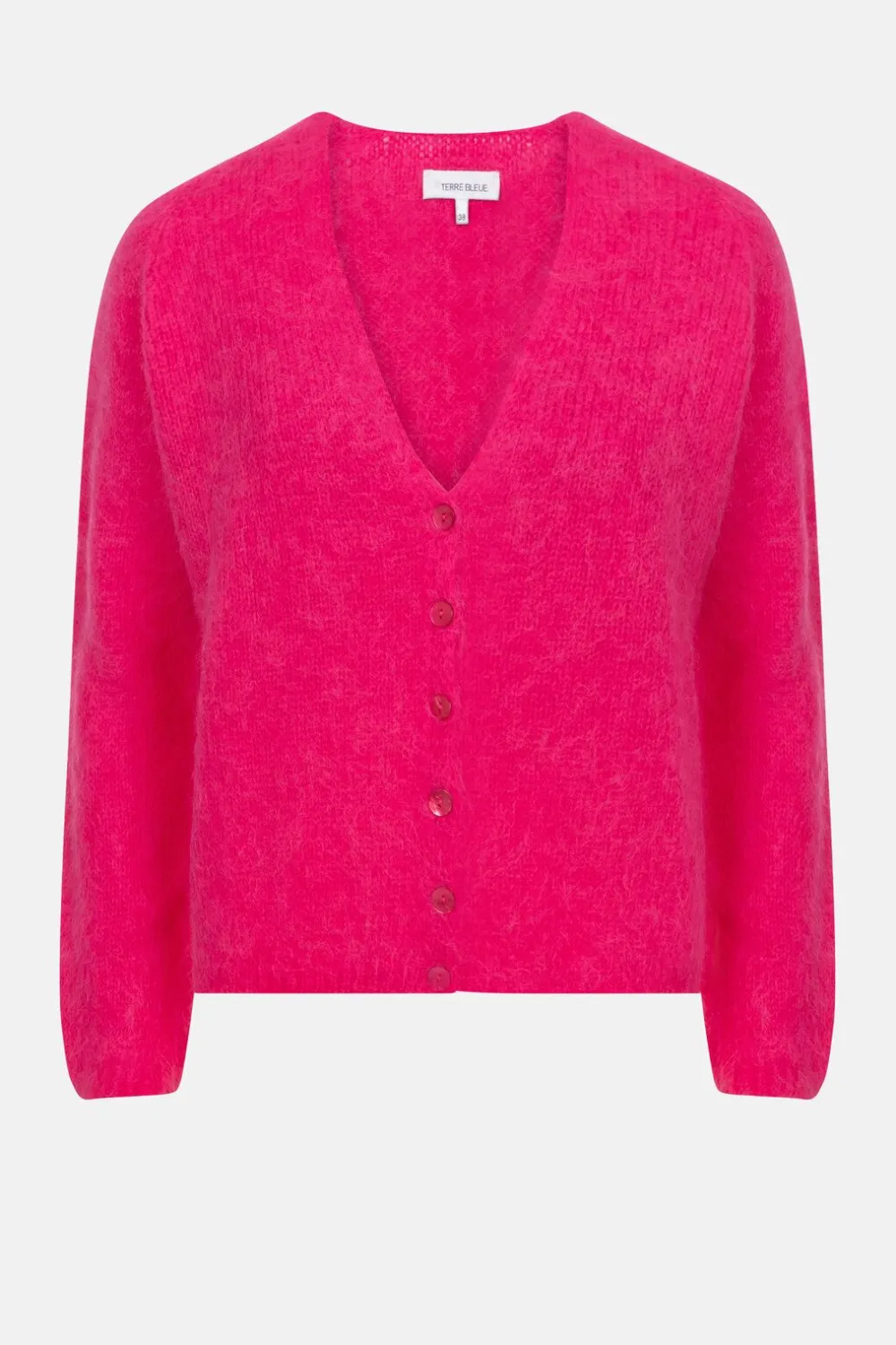 Een Boxyfit Met Een Diepe V-Hals En Roze Knoopjes.