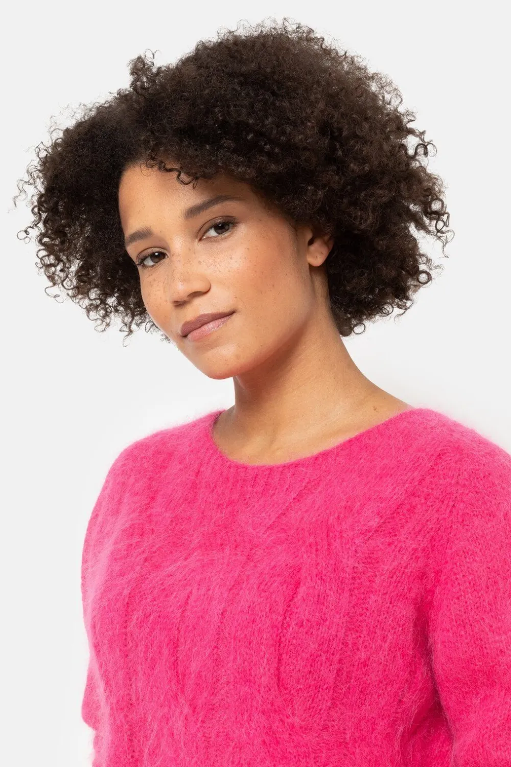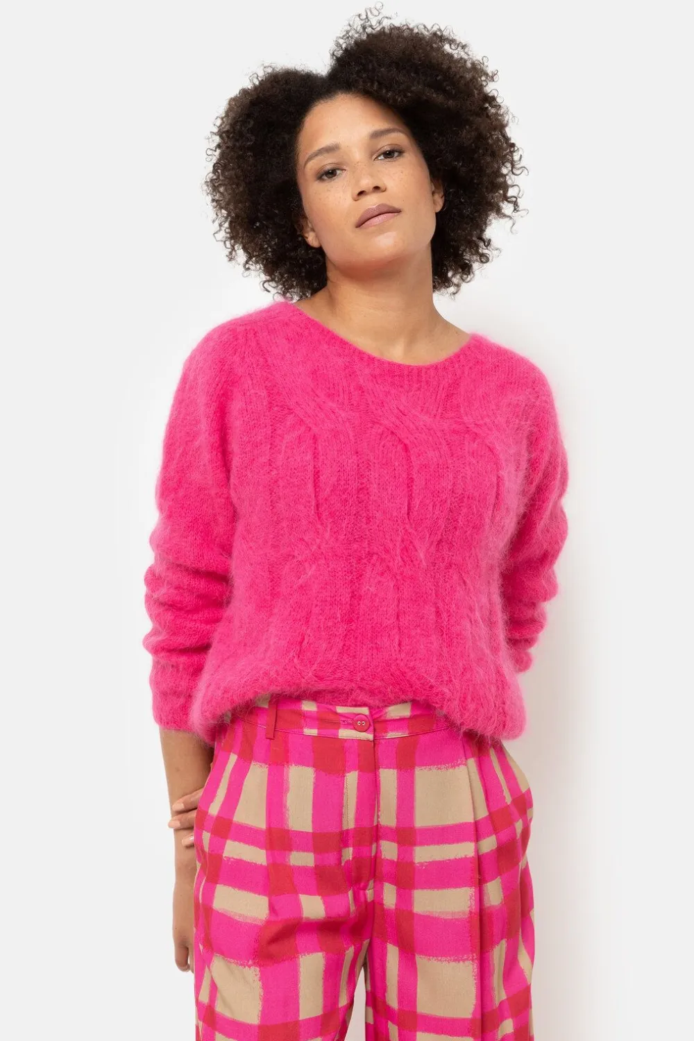 Gebreide Roze Damestrui Van O.A. Alpacawol En Wol.Een Zachte, Harige Look Met Een Subtiele Kabelsteek.En Een Korte Fit M…