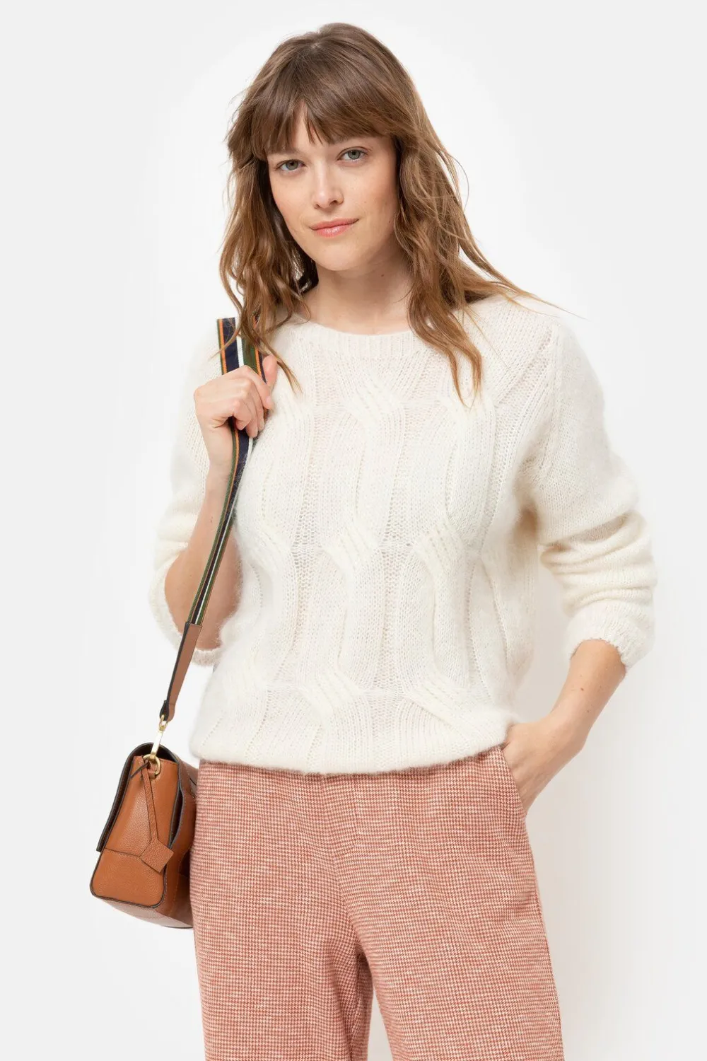 Beige Gebreide Damestrui In O.A. Alpacawol.Een Zachte, Harige Look Met Een Subtiele Kabelsteek.En Een Korte Fit Met Een …