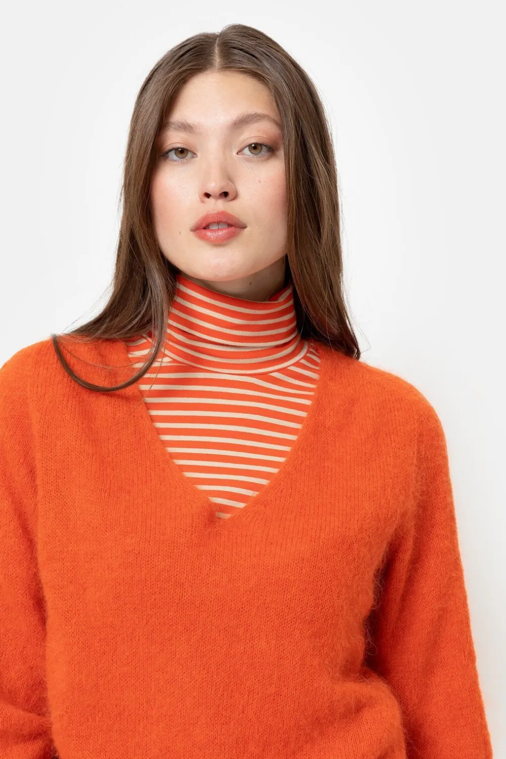 Gebreide Sweater Van O.A. Alpacawol En Wol.Fijne Trui Met Een Harige Look En Korte Fit.Elegante Snit Met Een Wijde V-Hal…