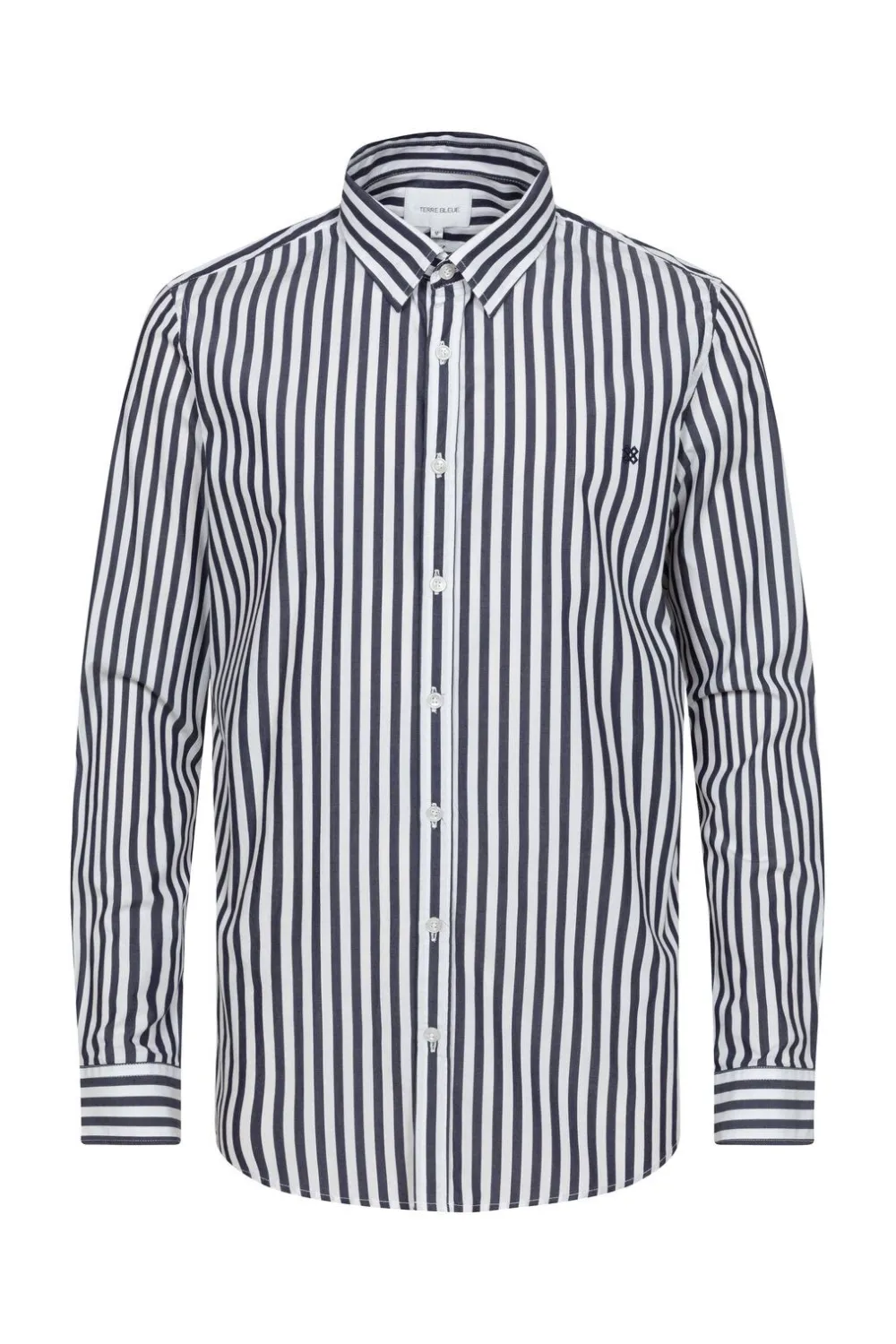 Blauw-Wit Hemd Voor Heren In 100% Katoen.Stijlvolle Slim Fit Met Flatterende Verticale Strepen.Een Geklede Hemdkraag En …