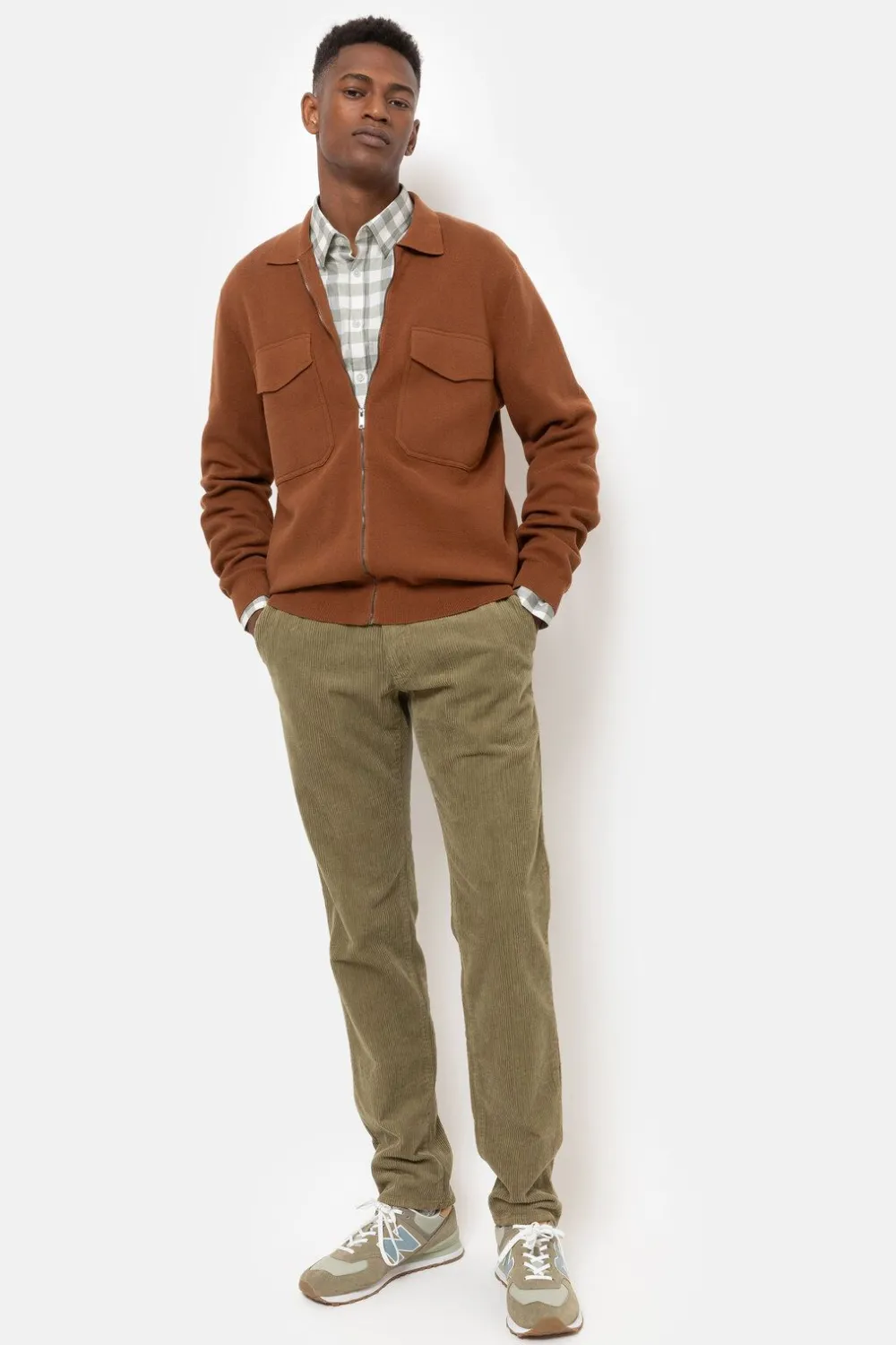 Bruine Herenchino In Ribvelours Van Katoen En Stretch.