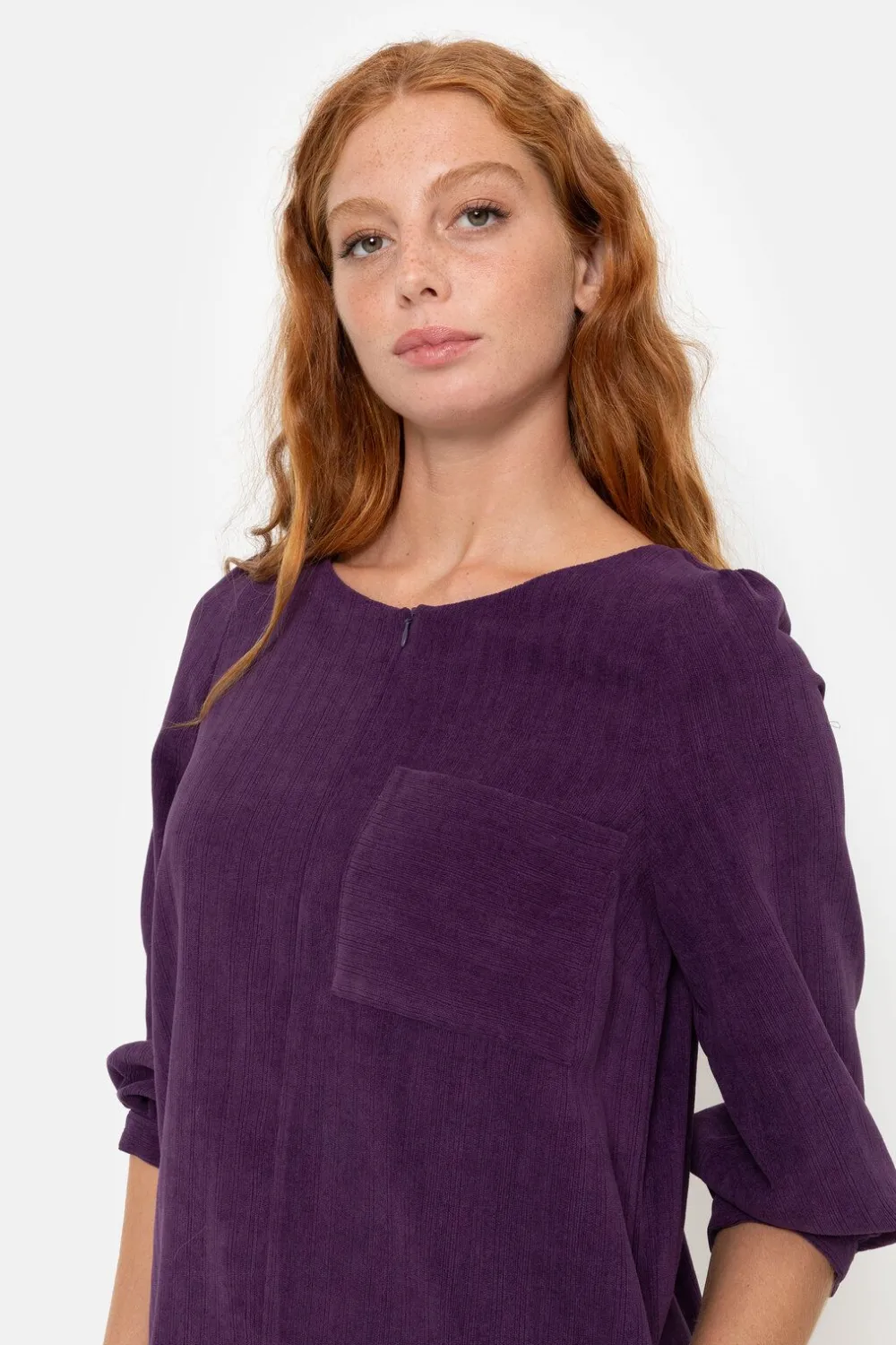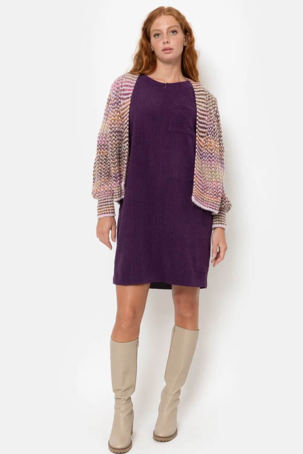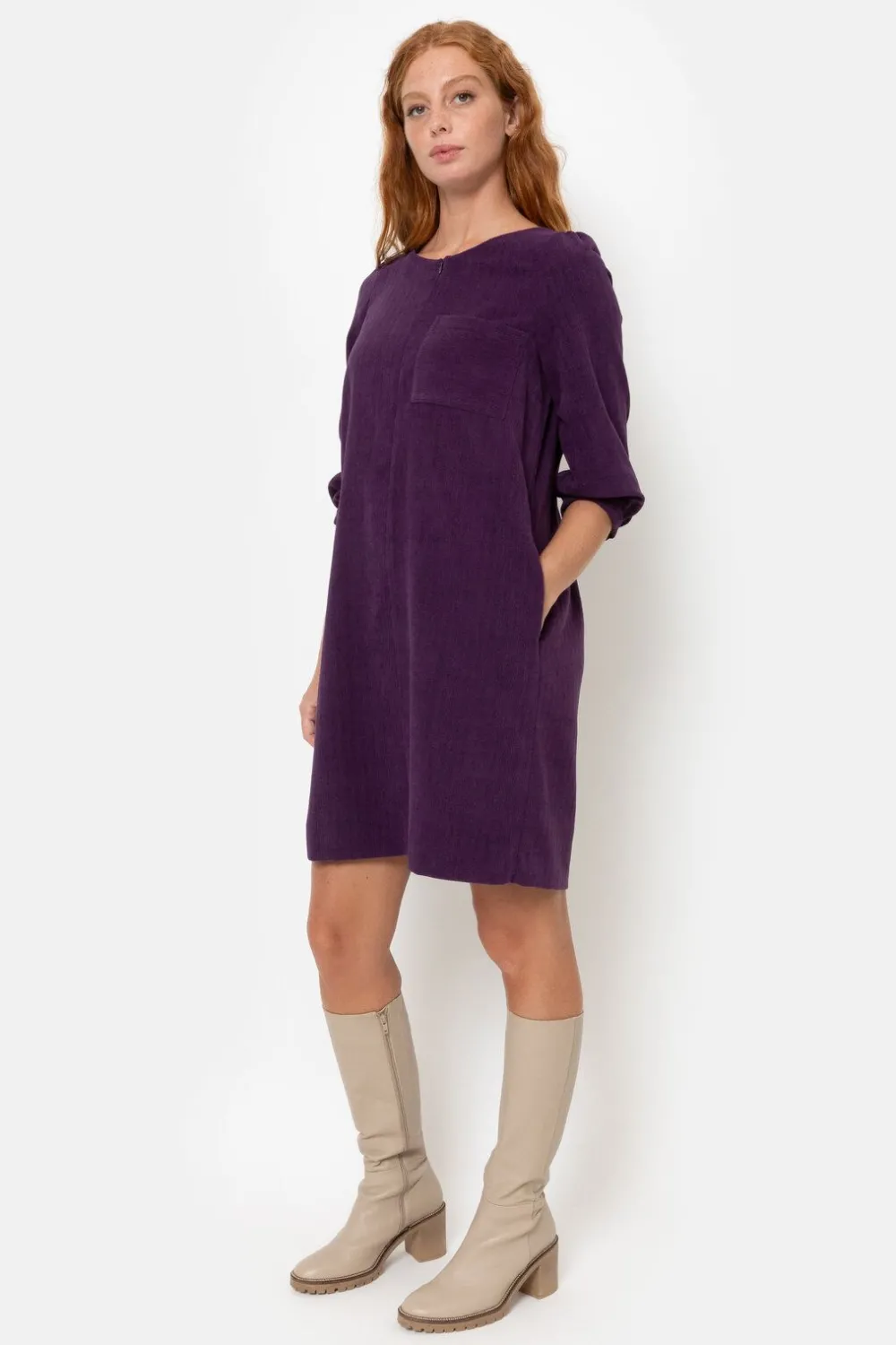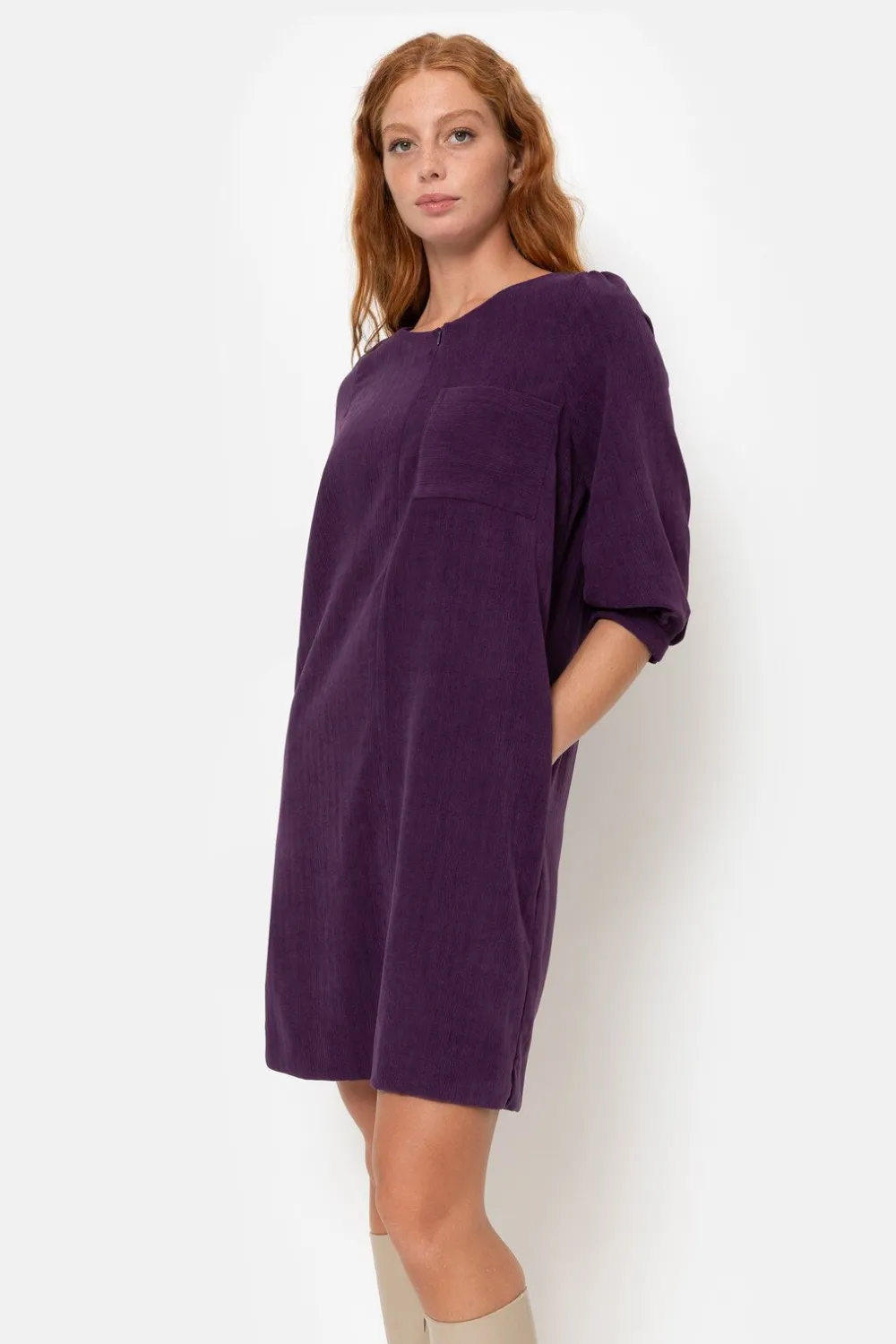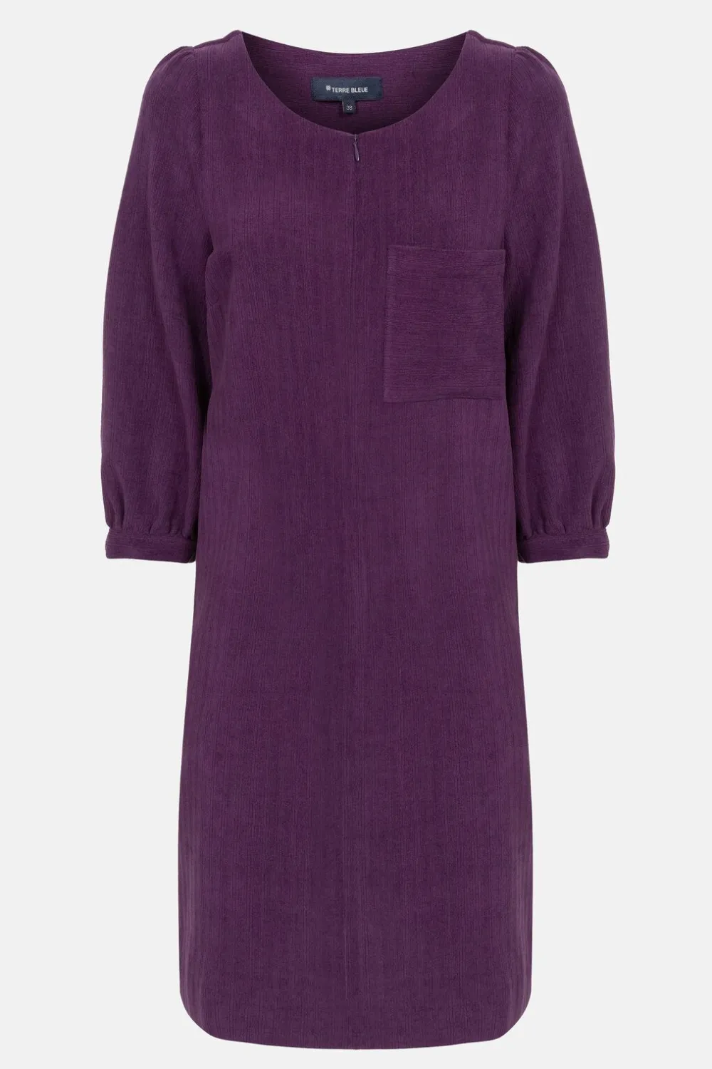 Paarse Jurk Tot Aan De Knie, Met Comfy Zijzakjes.Een Velourslook Met Een Trendy Borstzakje.Met Een Ingewerkte Rits Aan H…