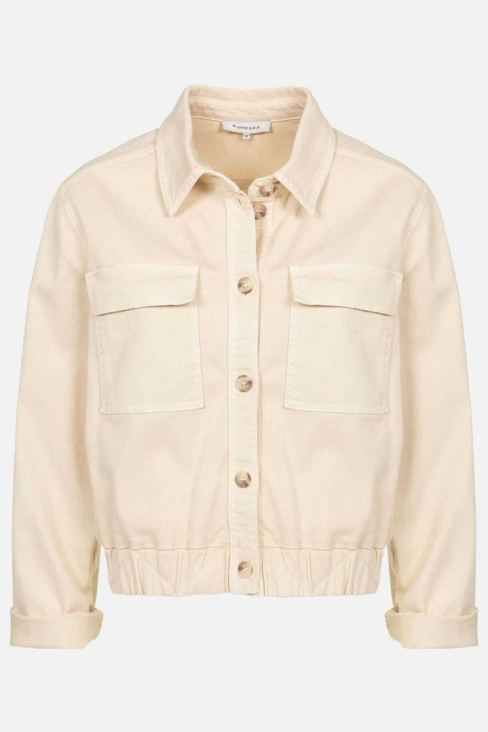 Beige Denim Vest In Katoen Met Wat Stretch In.Lange, Iets Wijdere Mouwen Die Je Makkelijk Oprolt.Match Met Een Blauwe Mi…