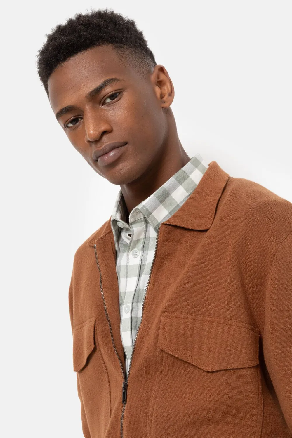 Bruine Tricot Heren Gilet In 100% Katoen.Comfortabele Snit Met Een Geklede Polokraag.Modieuze Borstzakken En Een Sportie…