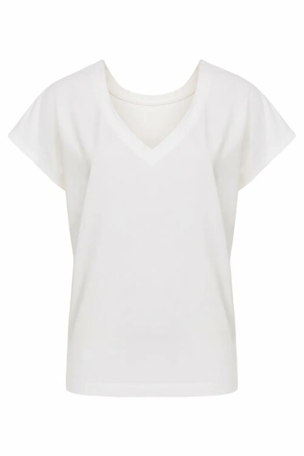 Ecru Damestop In Een Biokatoen- En Modalmix.Een Korte, Wijde Fit Met Elegante Kapmouwen.Match Met Een Beige Broek En Een…