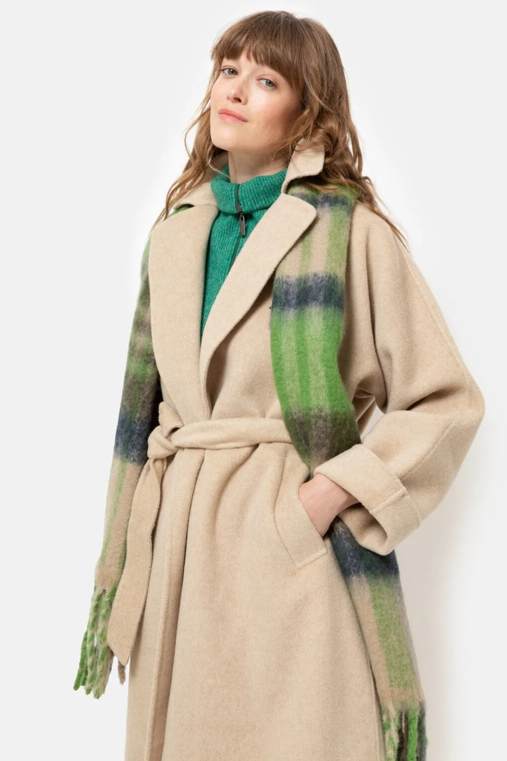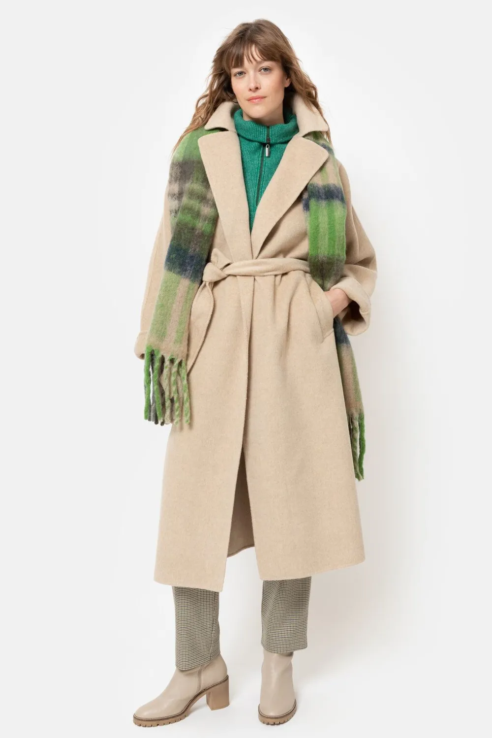 Lange Damesmantel In Een Zachte, Beige Wolmix.