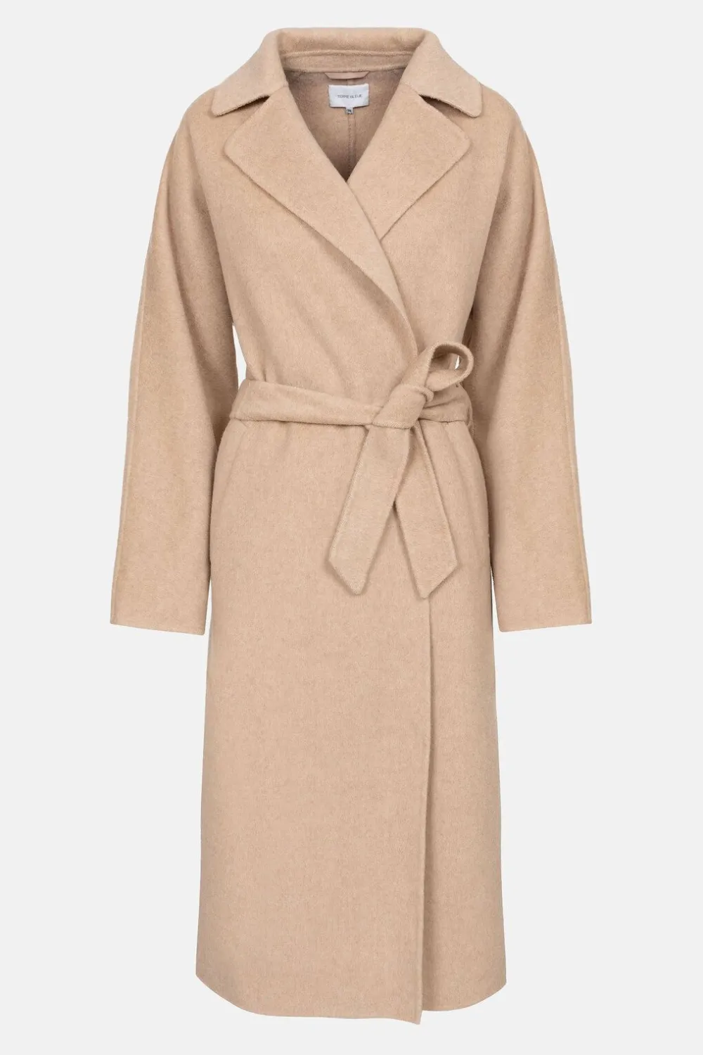 Lange Damesmantel In Een Zachte, Beige Wolmix.Met Wijde Mouwen Die Je Stijlvol Kan Oprollen.Brede Col Revers En Een Eleg…
