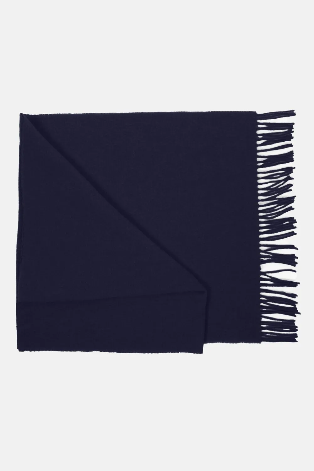 Donkerblauwe Herensjaal In Een Zeer Zachte Wolmix.Een Brede, Rechthoekige Snit Met Franjes.Combineer Donkerblauw Modieus…